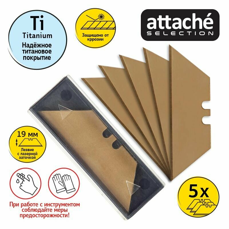 | Дополнительная информация | Лезвия сменные для канцелярских ножей Attache Selection SX11R-5, 19 мм, трапециевидные, 5 штук в упаковке |