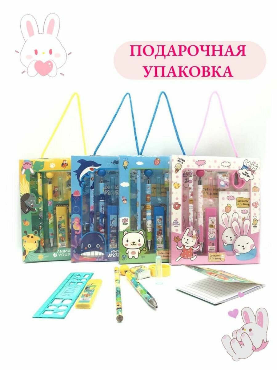 Канцелярский набор детский подарочный розовый кролик интересное: