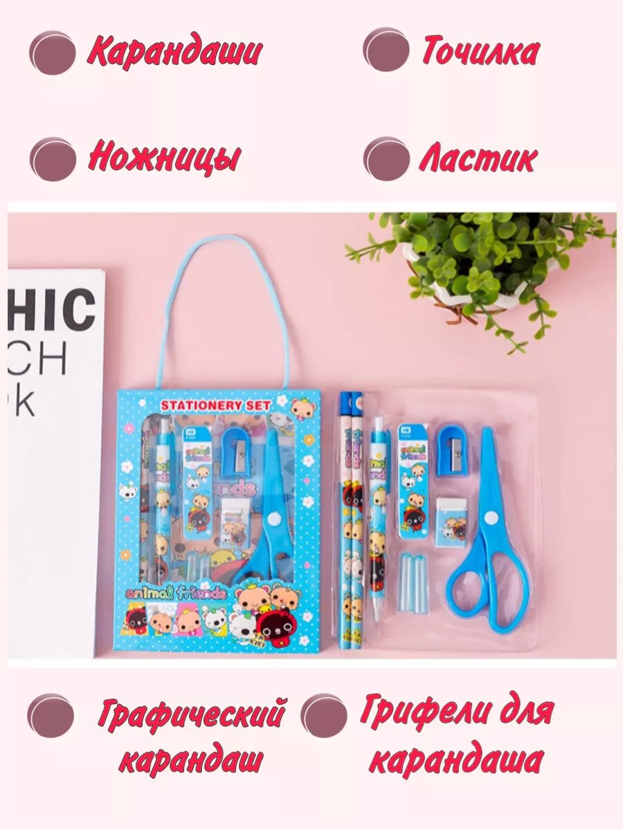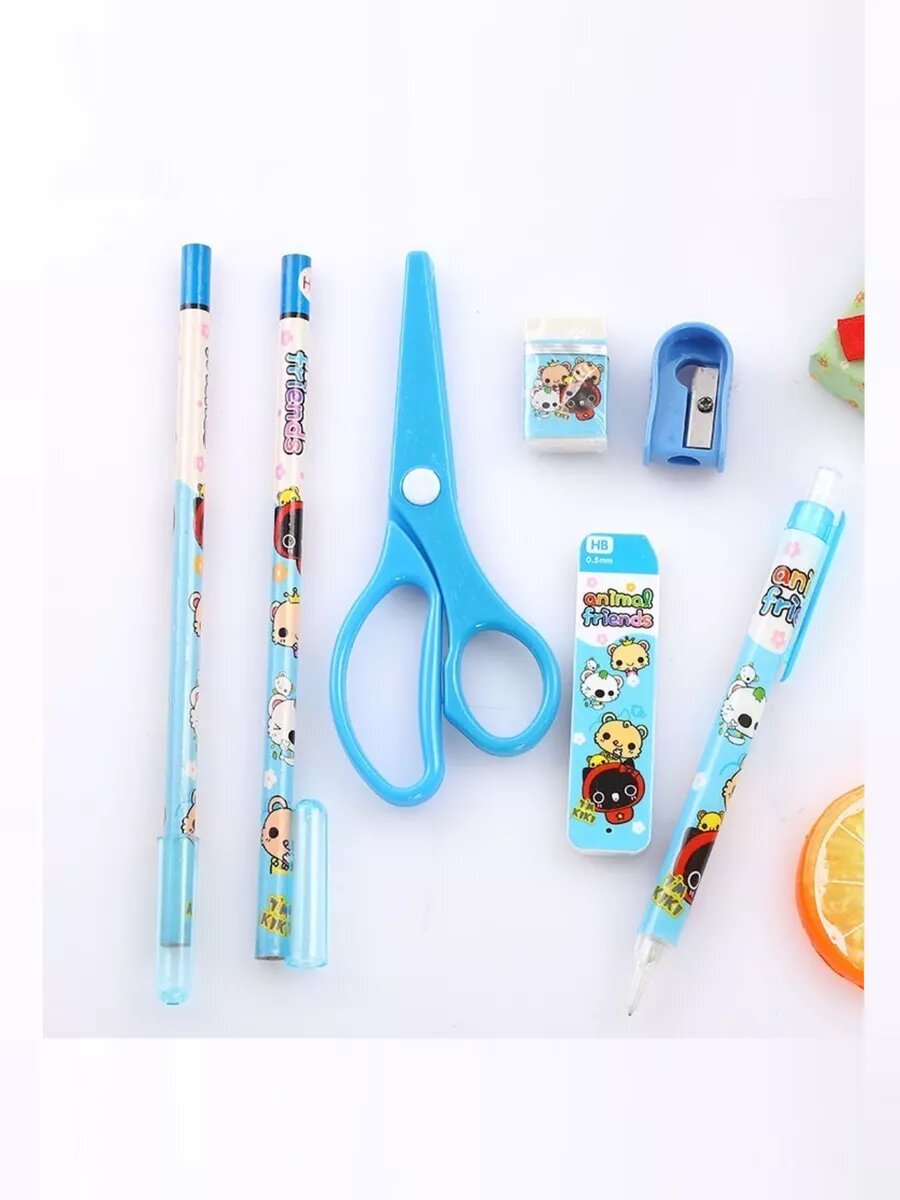 | В комплекте | механический карандаш, карандаши, ластик, точилка, ножницы, точилка, грифели |