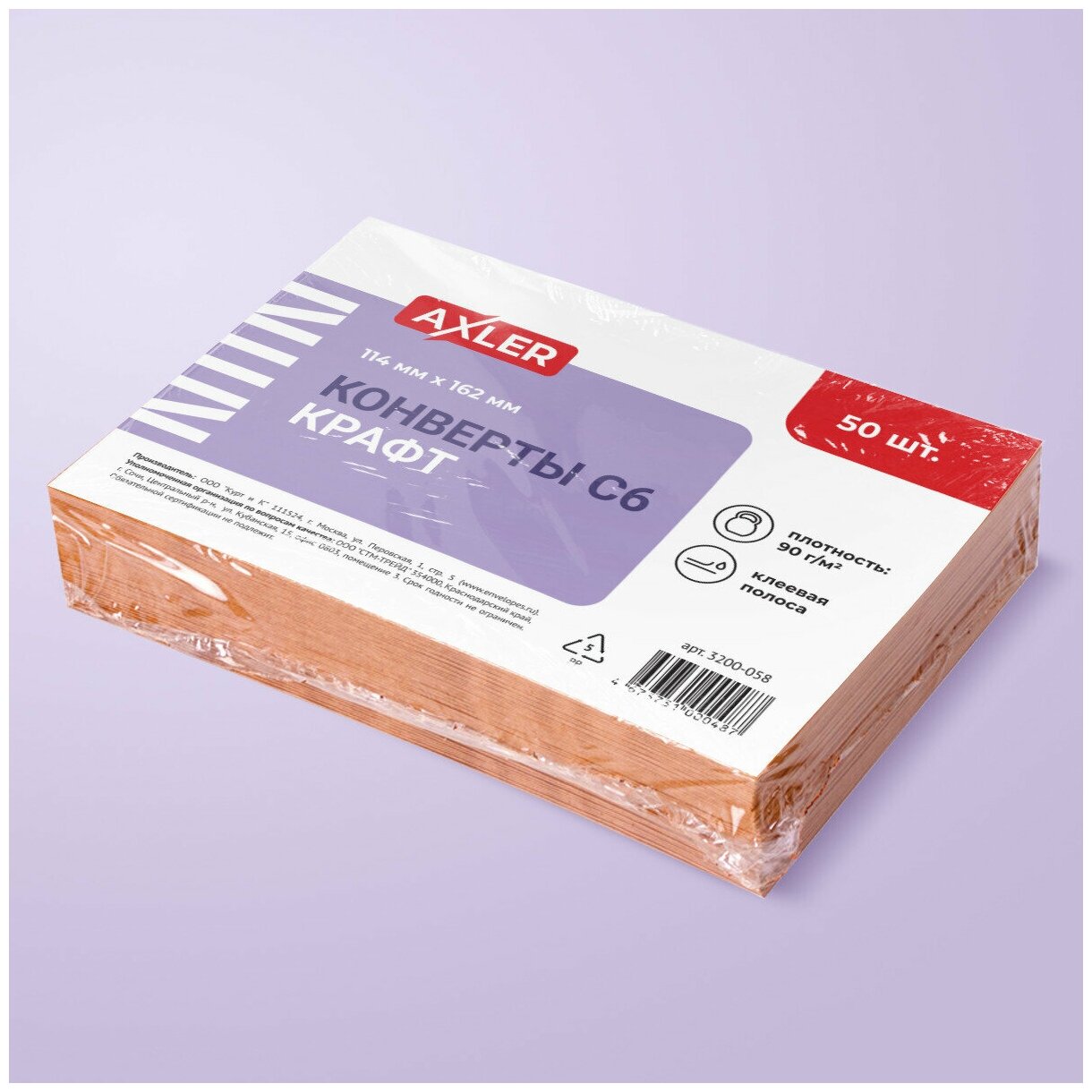 Конверты С5 (162х229мм) AXLER, комплект 100 шт, отрывная лента, внутренняя запечатка