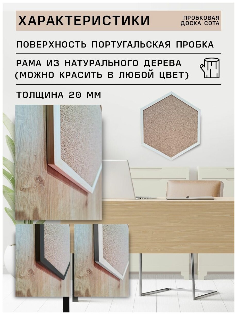 Доска пробковая Сота в деревянной раме на стену для заметок, записей информации размер 42х49 см интересное: