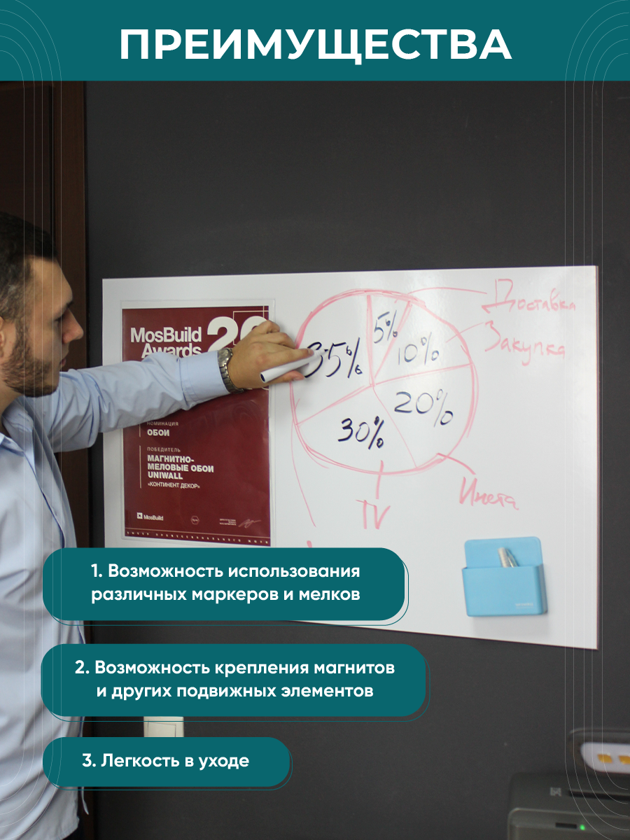 Доска демонстрационная магнитно-маркерная в рулоне на стену для офиса и дома ,60х90 см интересное: