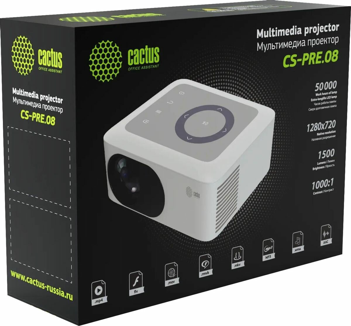 Проектор Cactus CS-PRE.08B.WXGA, черный интересное:
