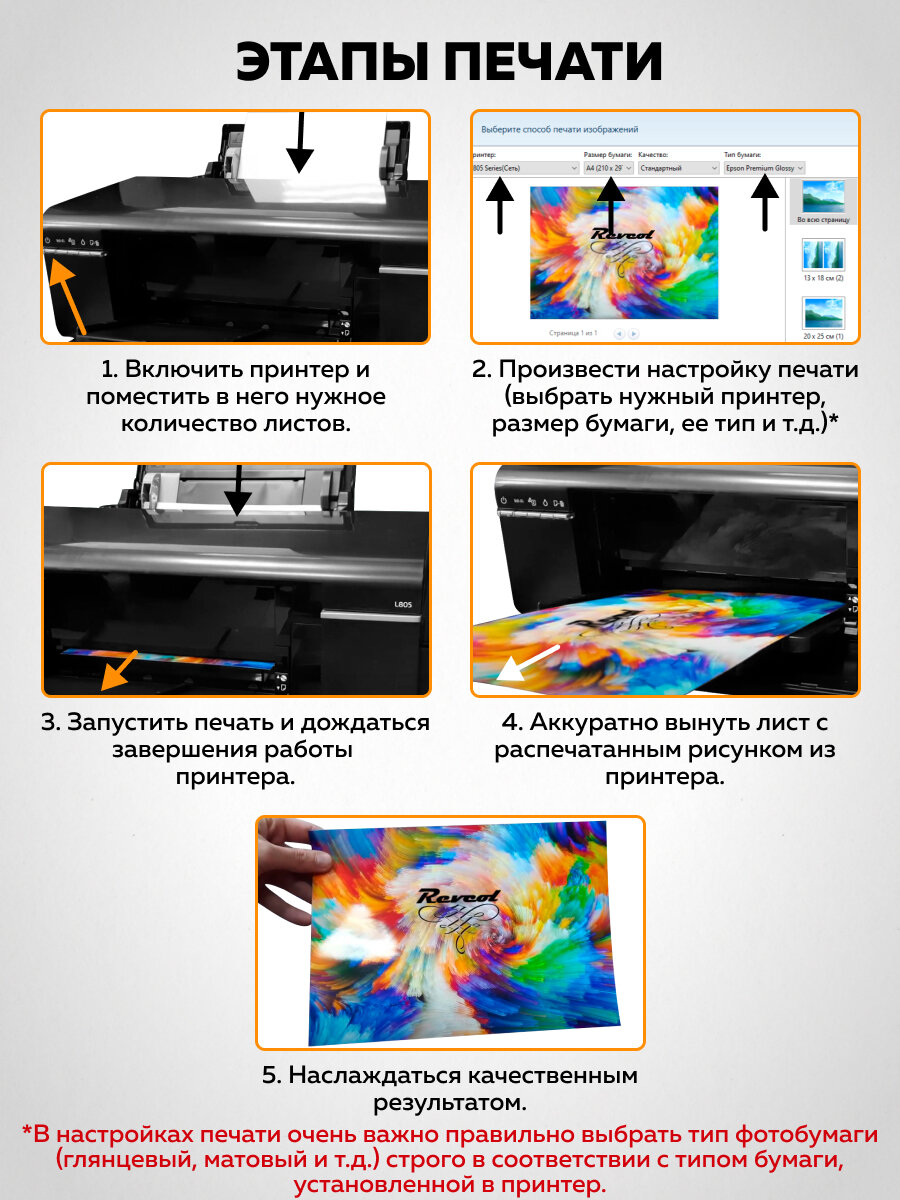 | Тип бумаги | фотобумага |