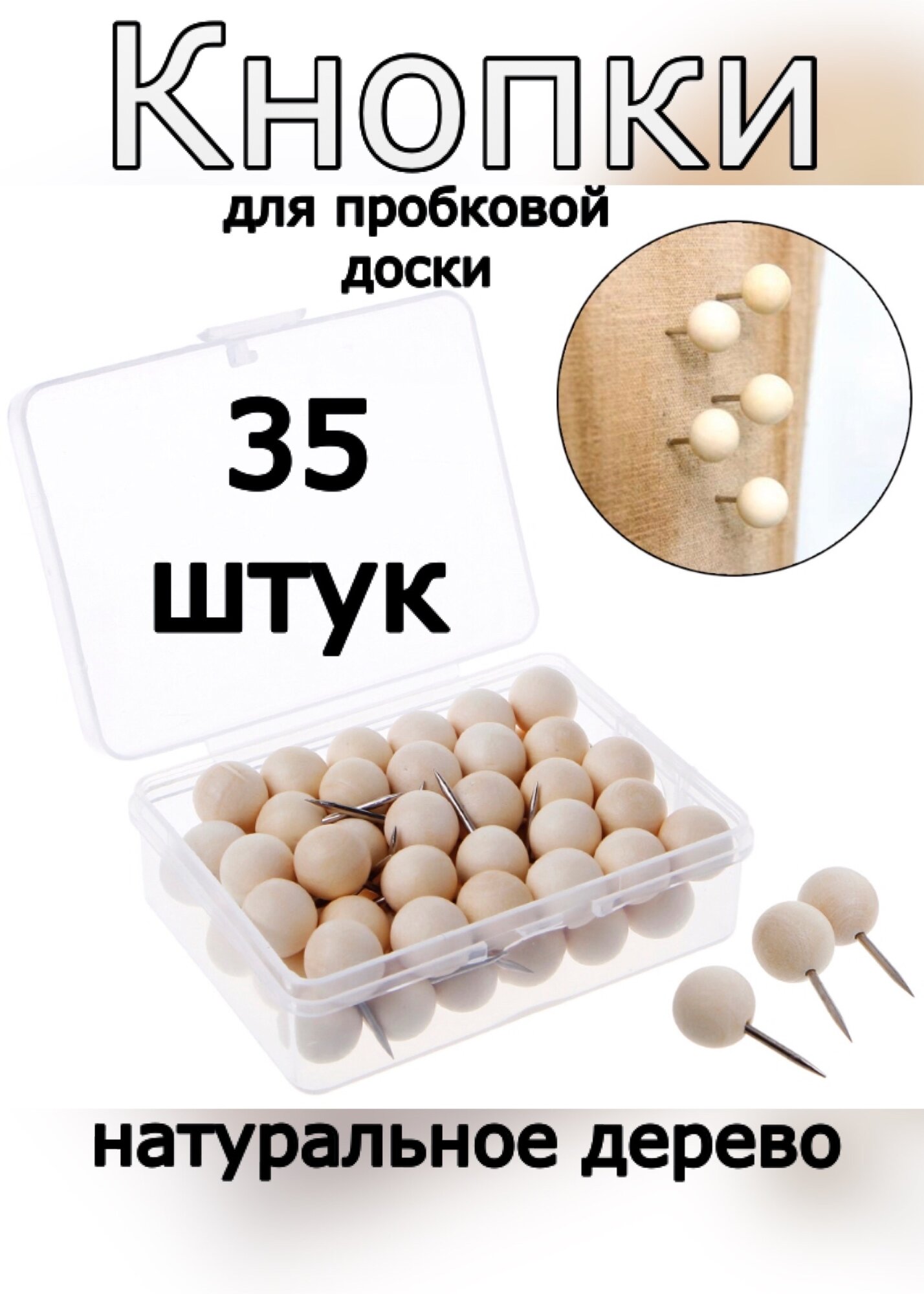 Силовые кнопки деревянные круглые для пробковых досок, 35 штук интересное: