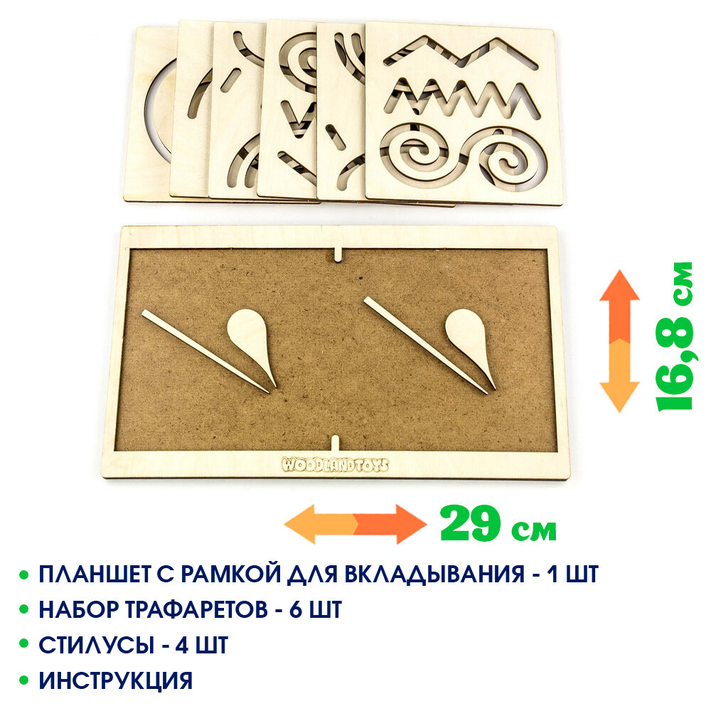 | Комплектация | Планшет с рамкой для вкладывания - 1шт., Набор трафаретов - 6 шт., Стилусы - 4 шт., Инструкция - 1шт. |