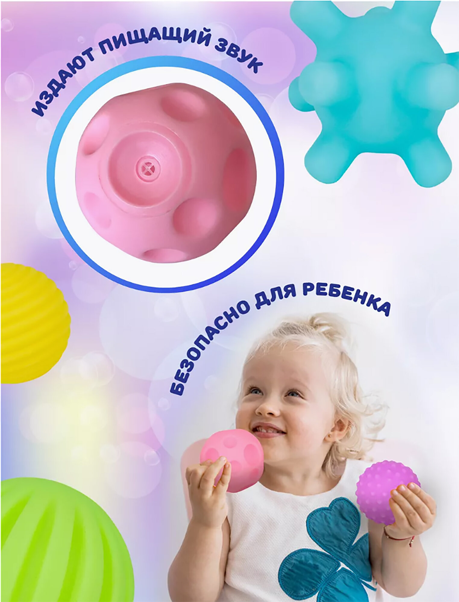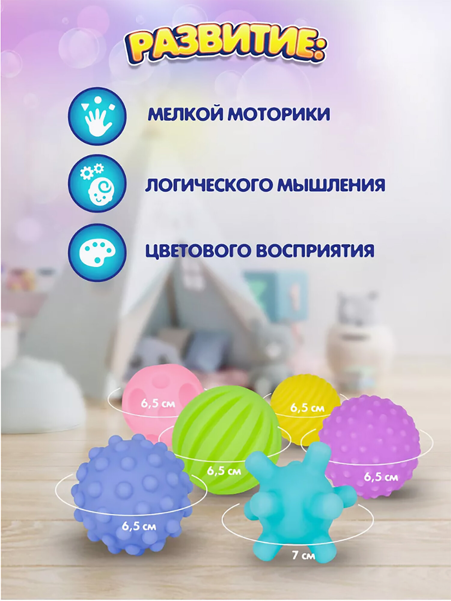 Набор тактильных мячиков / Игрушка развивающая / Массажные мячики для малышей / 6 штук интересное: