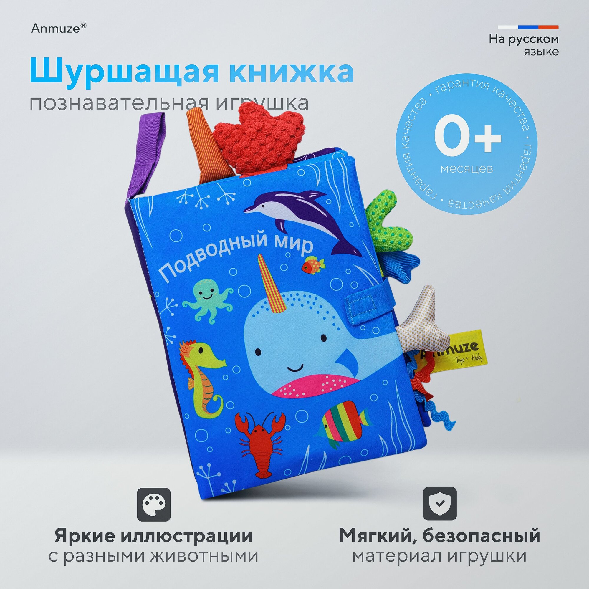 Купить Мягкая развивающая книжка-игрушка для малышей с шуршащими страницами и хвостами животных Океан