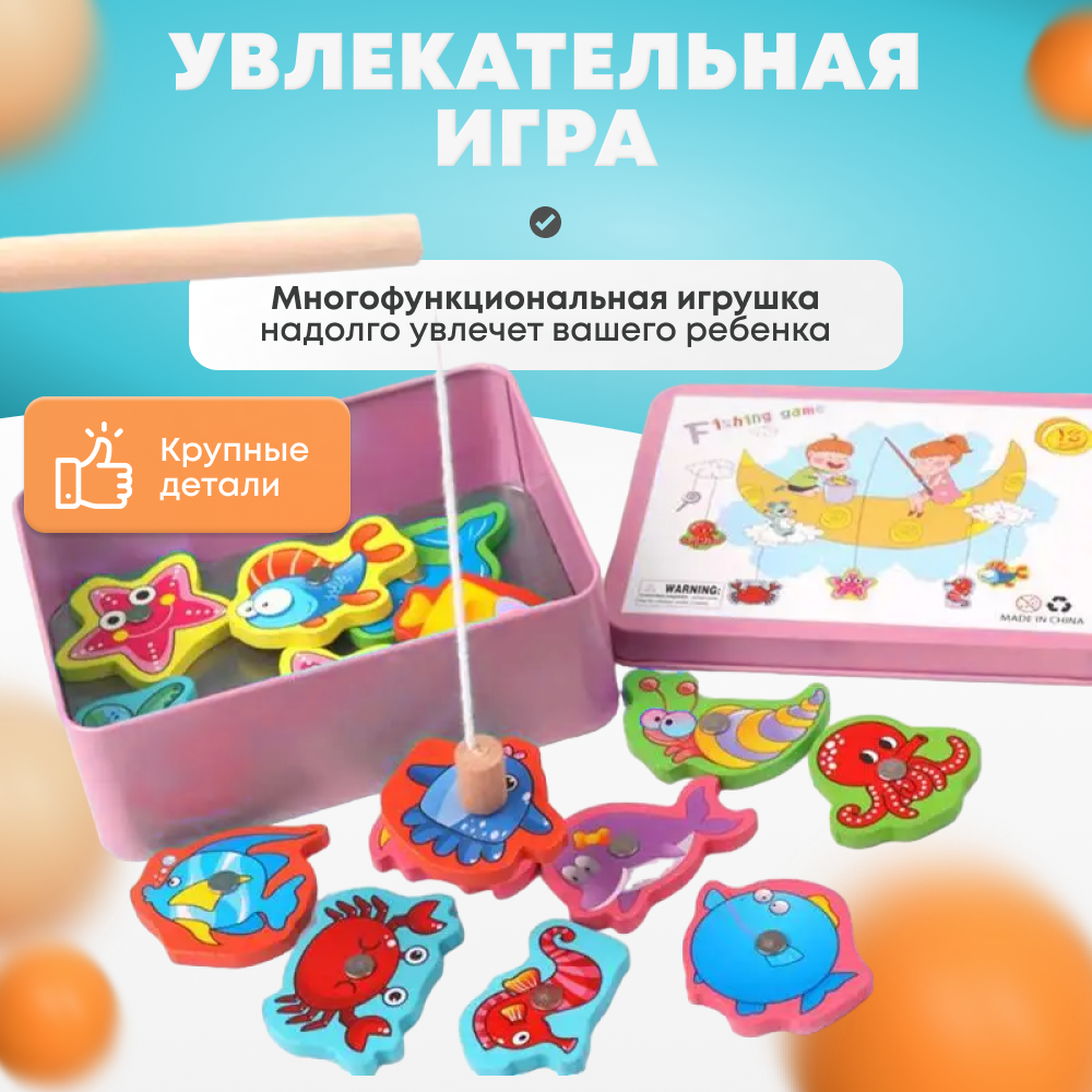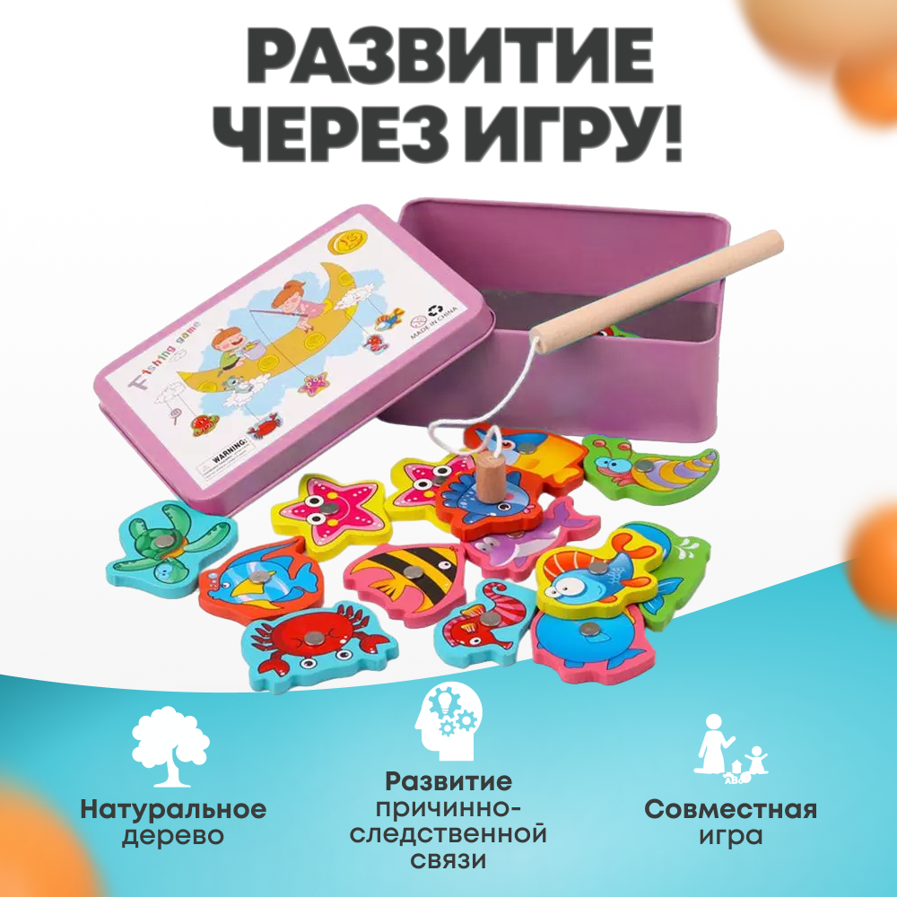 Обучающая игра, рыбалка магнитная, игрушка детская, развивающая деревянная игрушка Океан