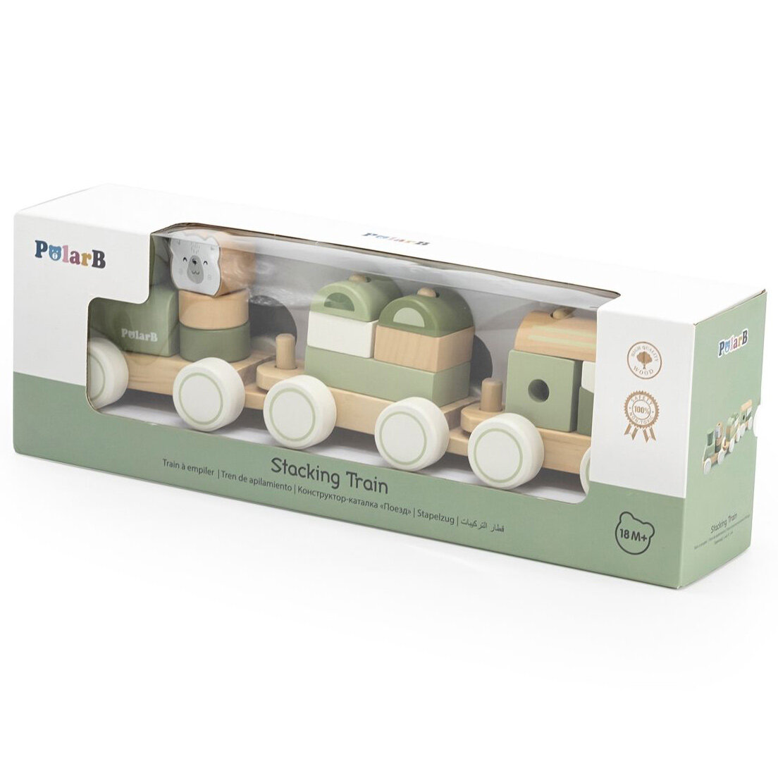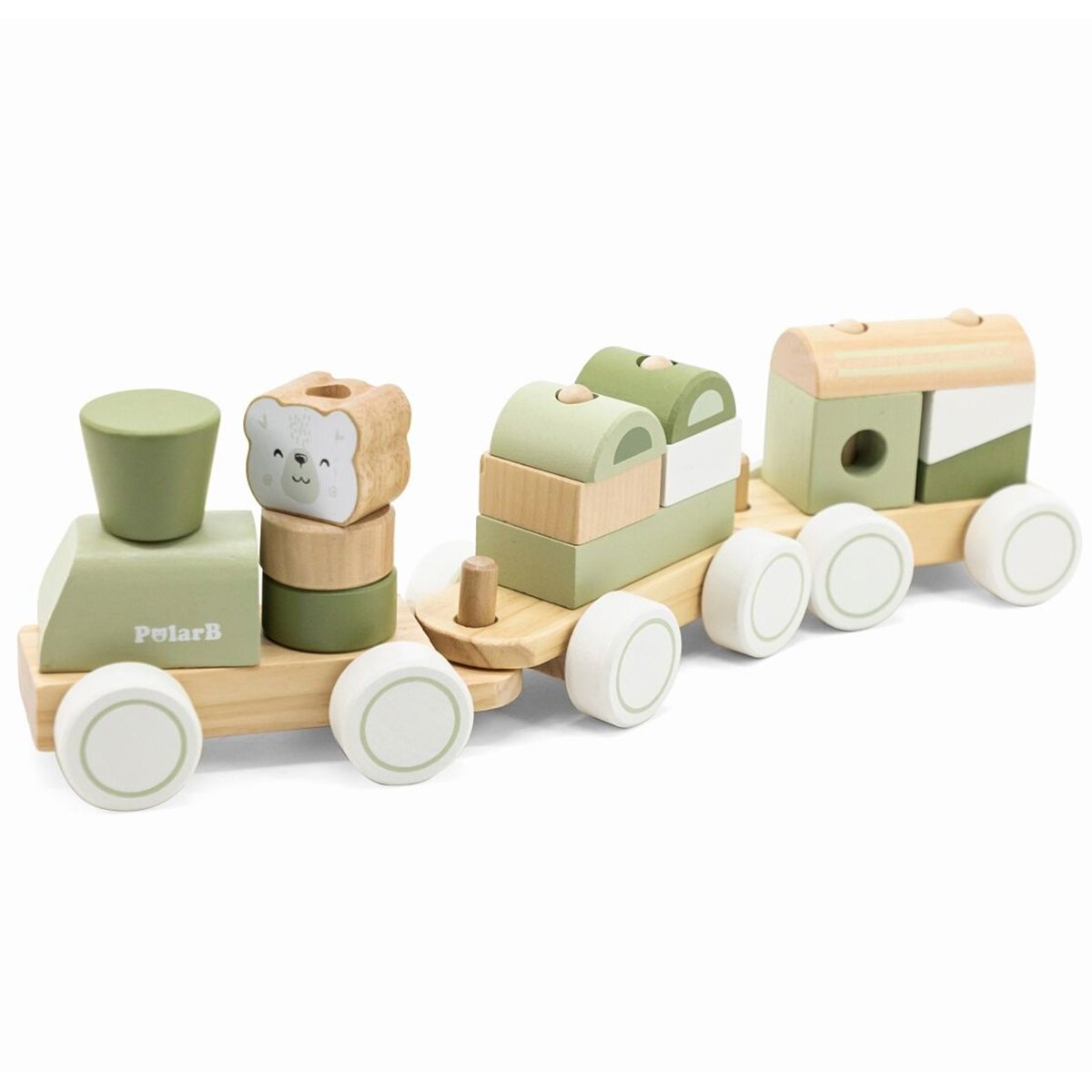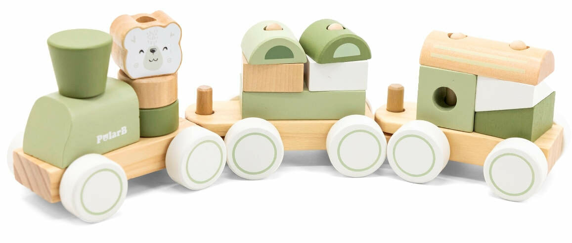 Купить VIGA PolarB Конструктор-каталка Поезд (14 деталей + 3 платформы) зеленый 44231 с 1,5 лет