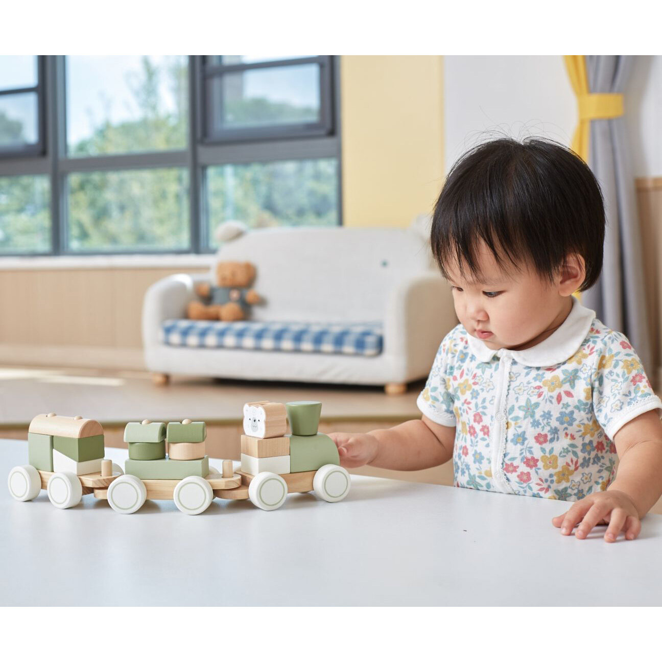 Конструктор-каталка Viga PolarB Поезд, 14 деталей + 3 платформы, зеленый 44231