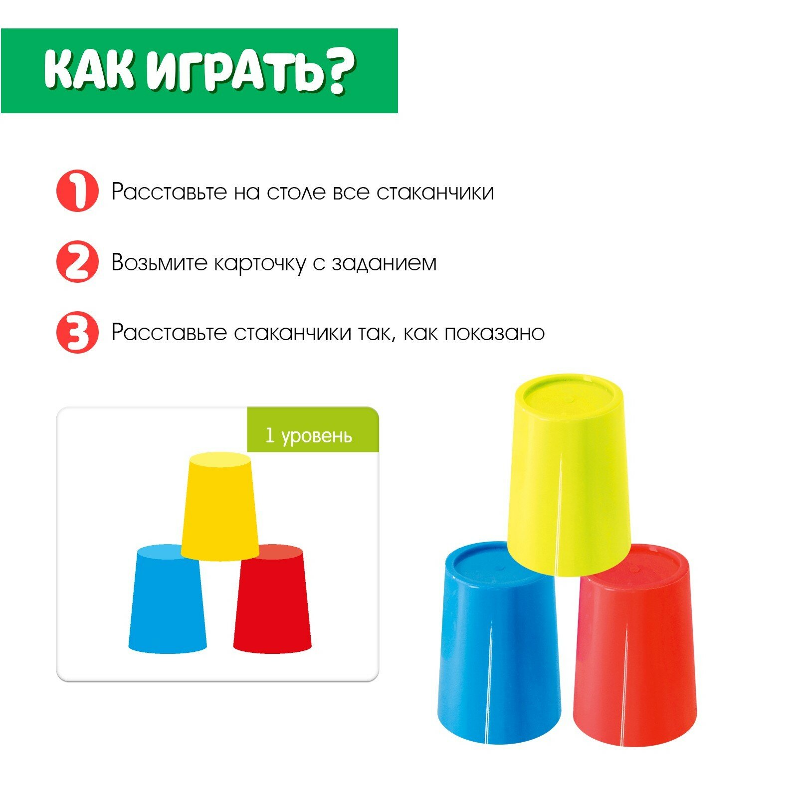 | Комплектация | 20 заданий, 8 стаканчиков и инструкция. |