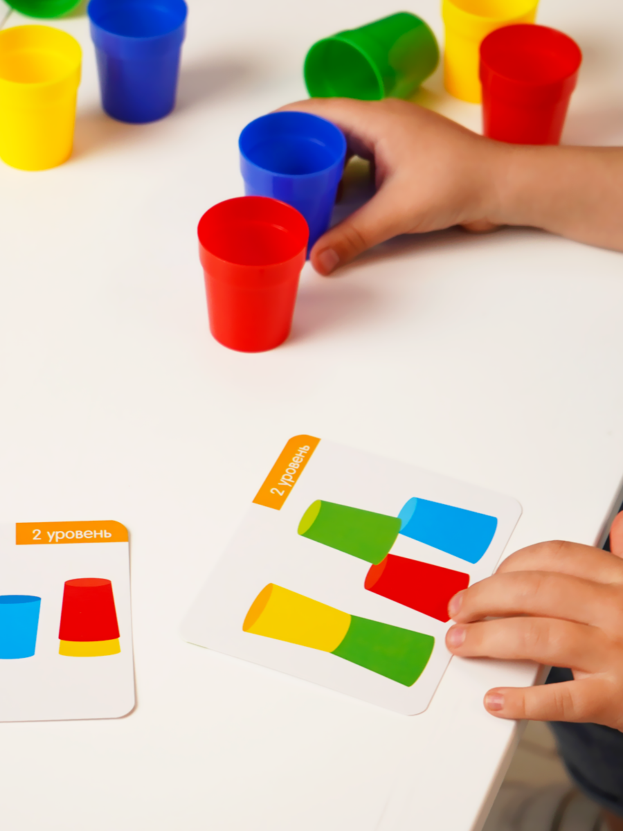 Развивающий набор "Цветные стаканчики" с заданиями интересное: