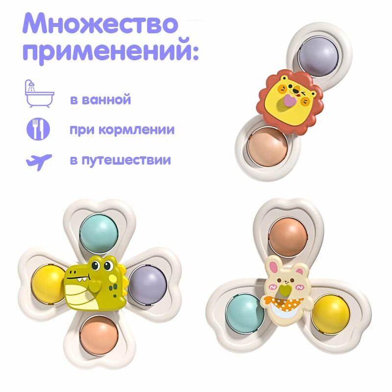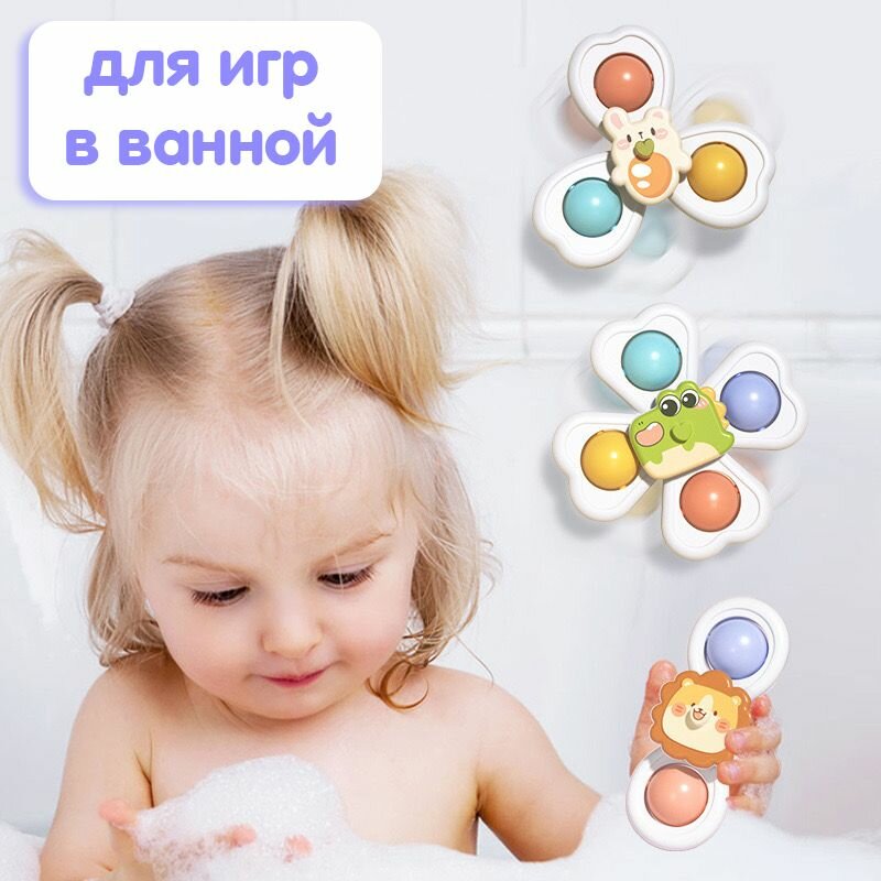 Набор игрушек для ванной детские спиннеры на присоске 3 штуки для купания с погремушкой для малышей, детские игрушки для девочек и мальчиков интересное: