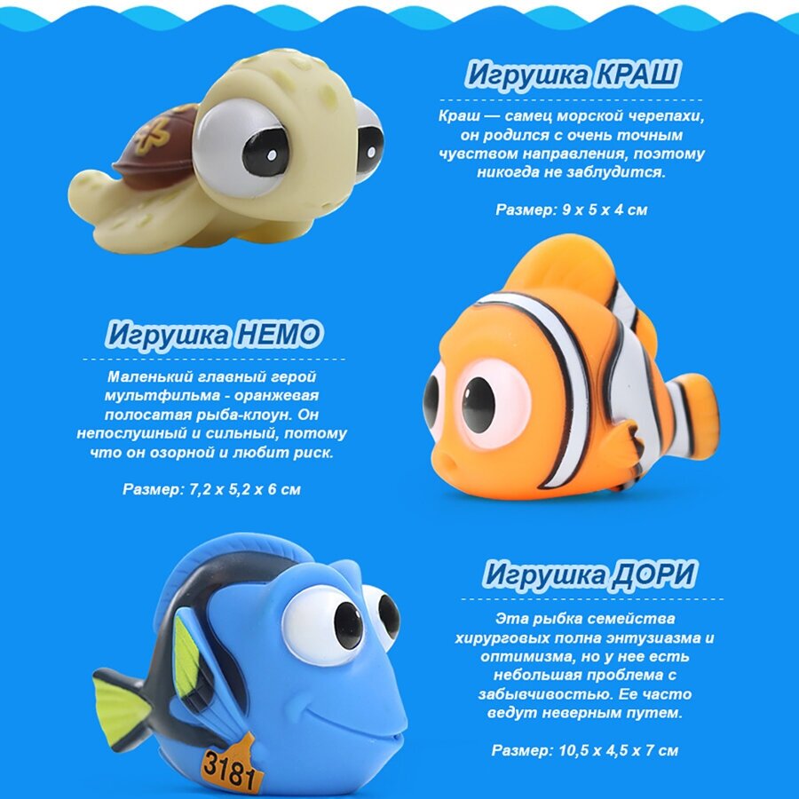 Ниже Вы можете прочитать отзывы на Набор игрушек для купания в ванной малышей "Немо" (3 шт), ознакомится с подробными характеристиками, посмотреть интересные обзоры и фотографии на Набор игрушек для купания в ванной малышей "Немо" (3 шт).