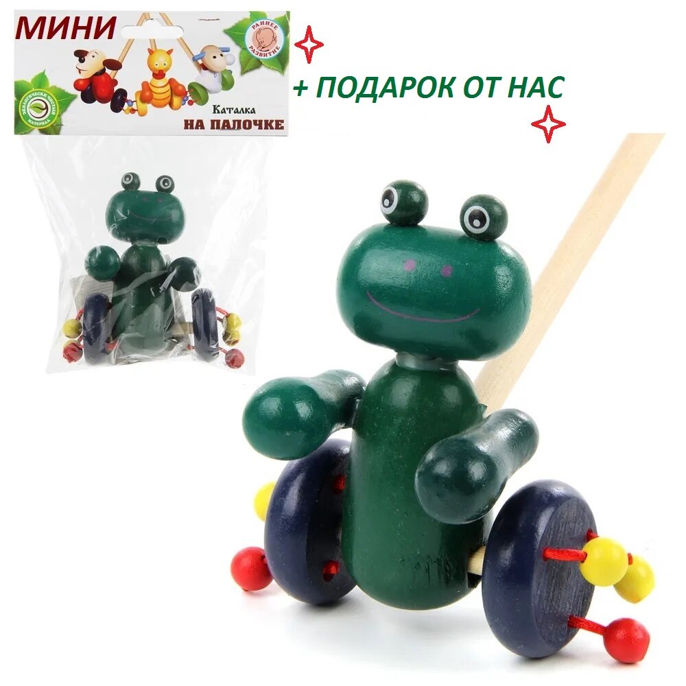 Купить Деревянная детская игрушка каталка на палочке от 1 года "Лягушка