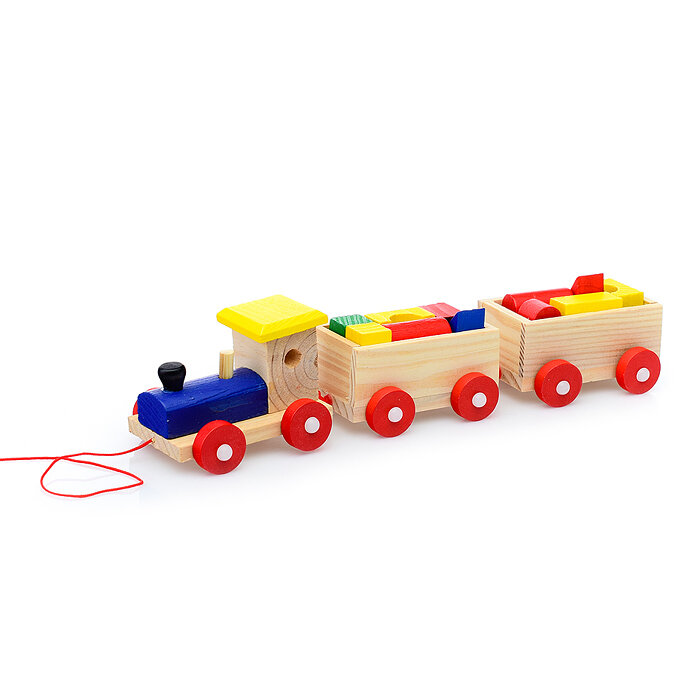 Каталка "Паровозик" с конструктором, 28 см, дерево, от 1 года