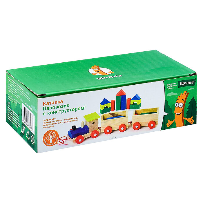 Каталка детская деревянная Паровозик с конструктором