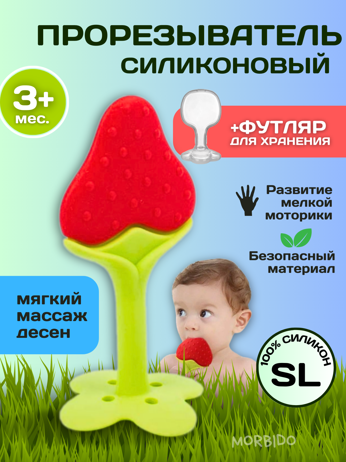 Грызунок прорезыватель массажер силиконовый для детей, клубника интересное: