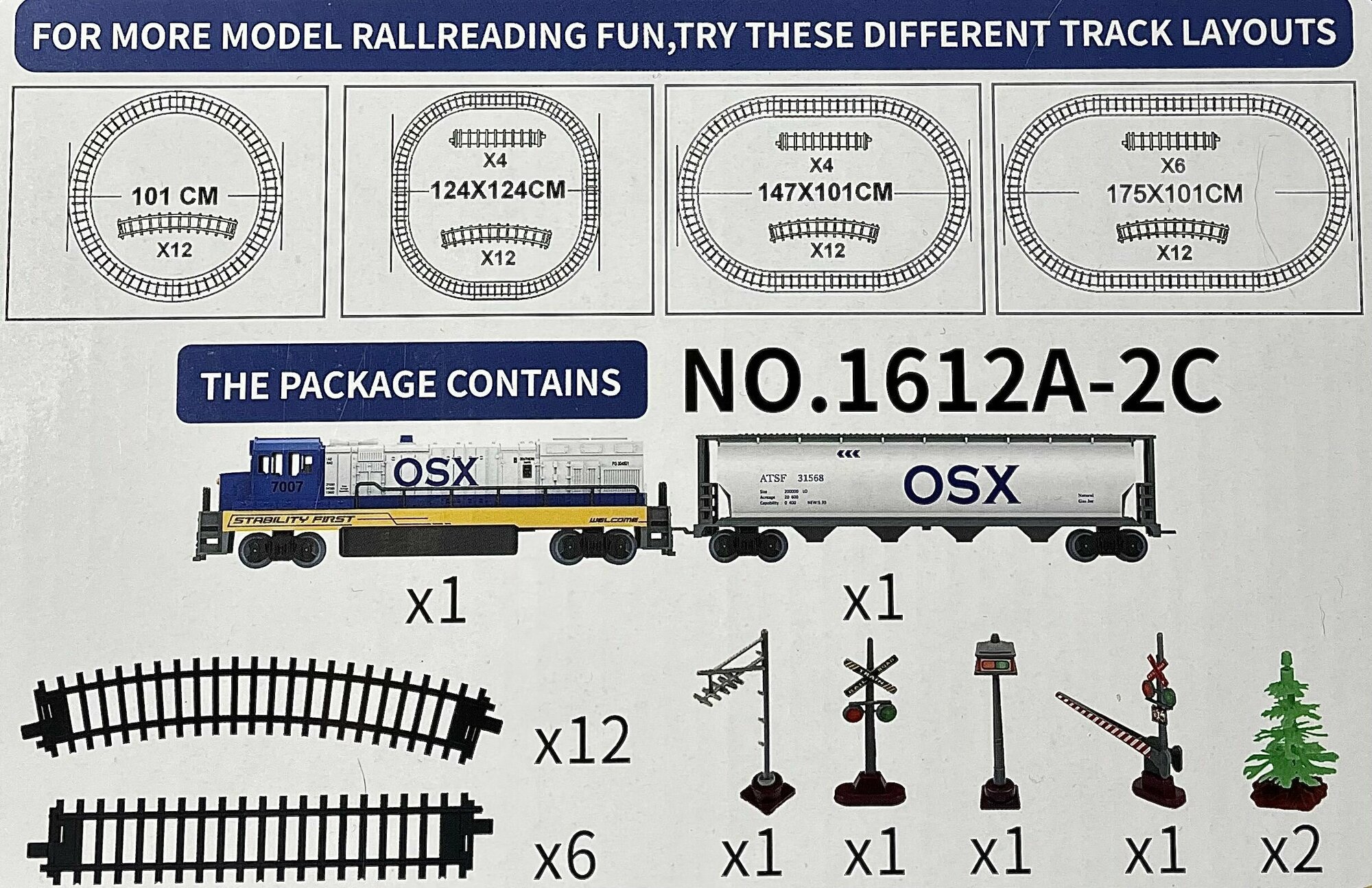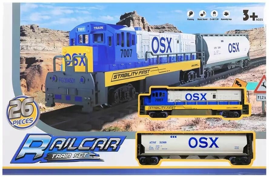 | Комплектация | рельсы / 2 вагона / декорации. |