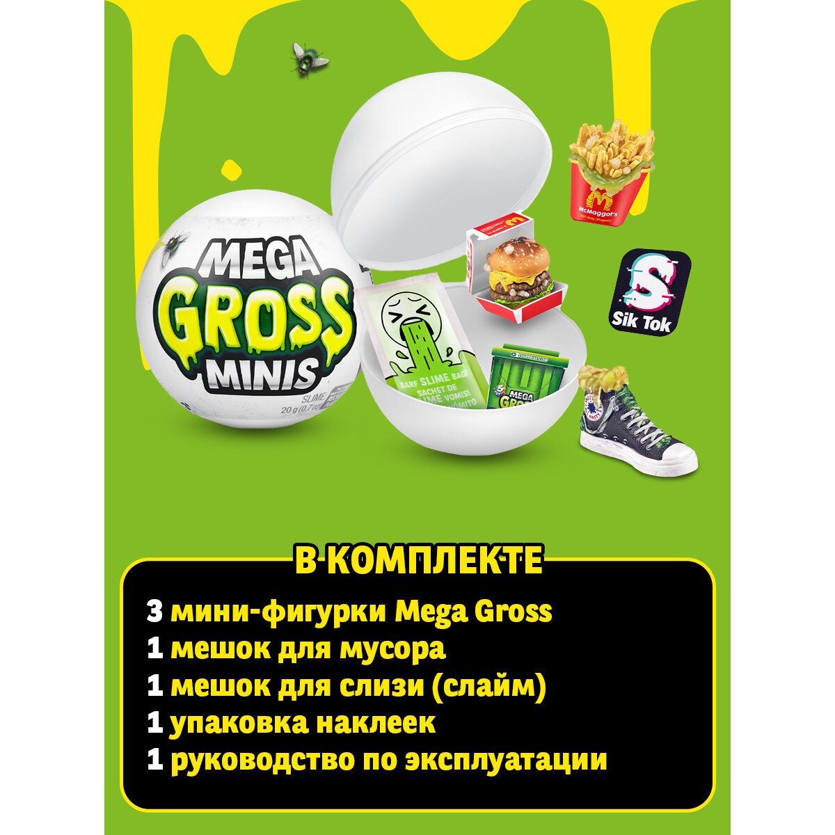 | Комплектация | 3 мини-фигурки Mega Gross Minis, 1 мешок для мусора, 1 мешок для слизи, 1 упаковка наклеек, 1 руководство коллекционера |