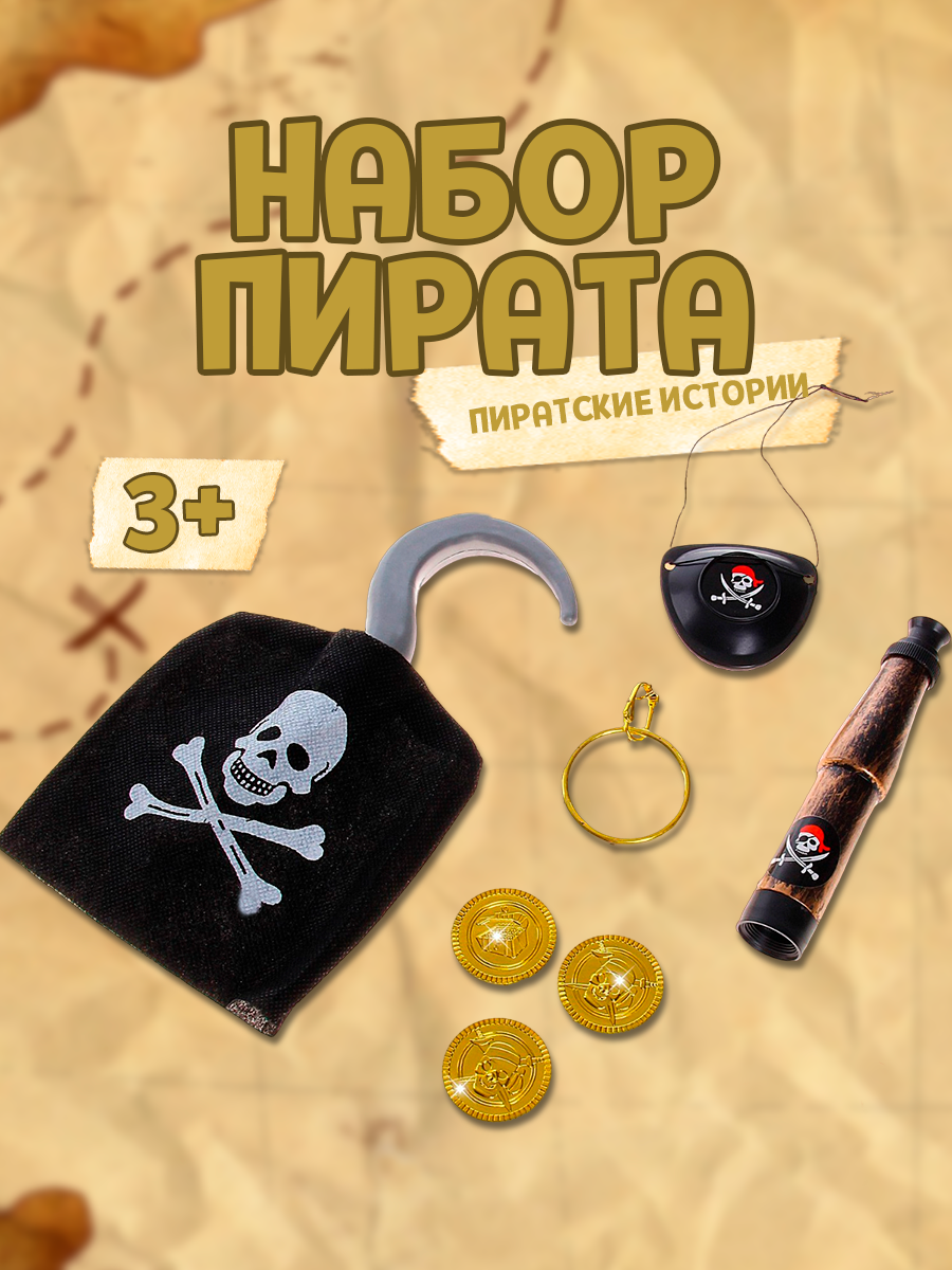 Купить Набор пирата "Крюк", 7 предметов: монеты, повязка на глаз, серьга, подзорная труба, для детей и малышей