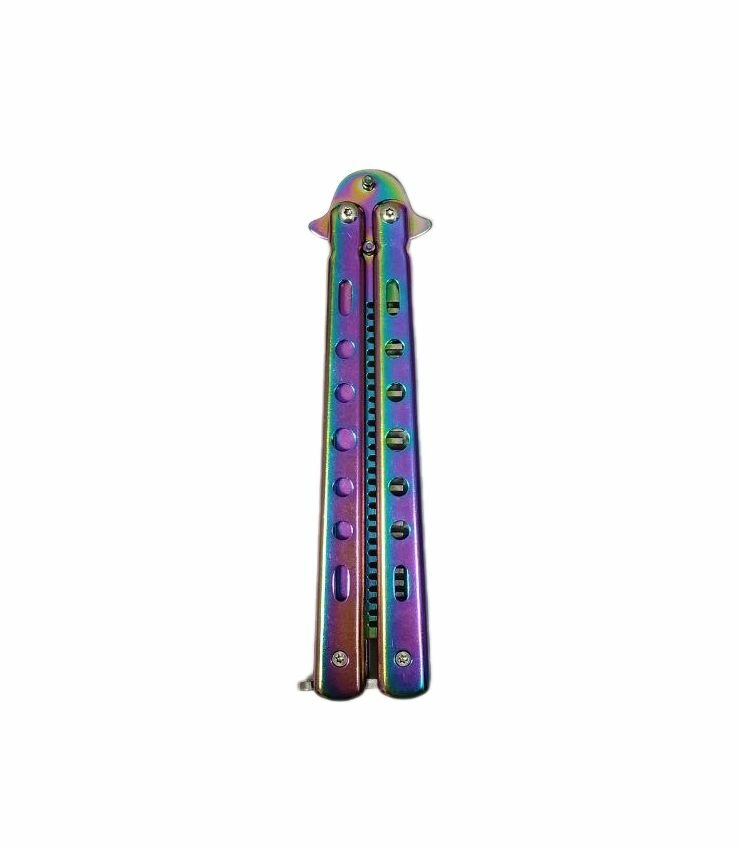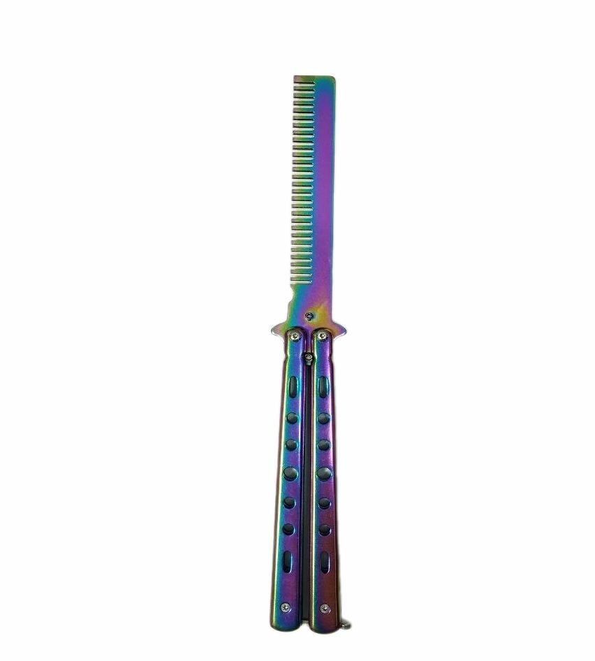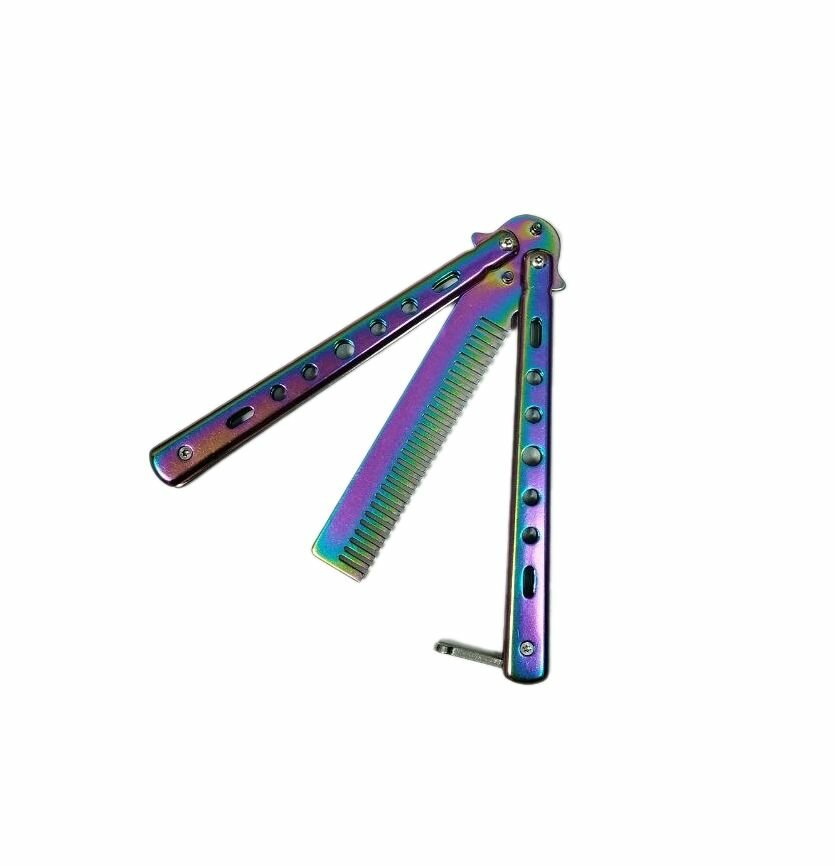 Купить Игрушечное оружие, Нож бабочка разноцветный, балисонг, Расческа 13см, металл