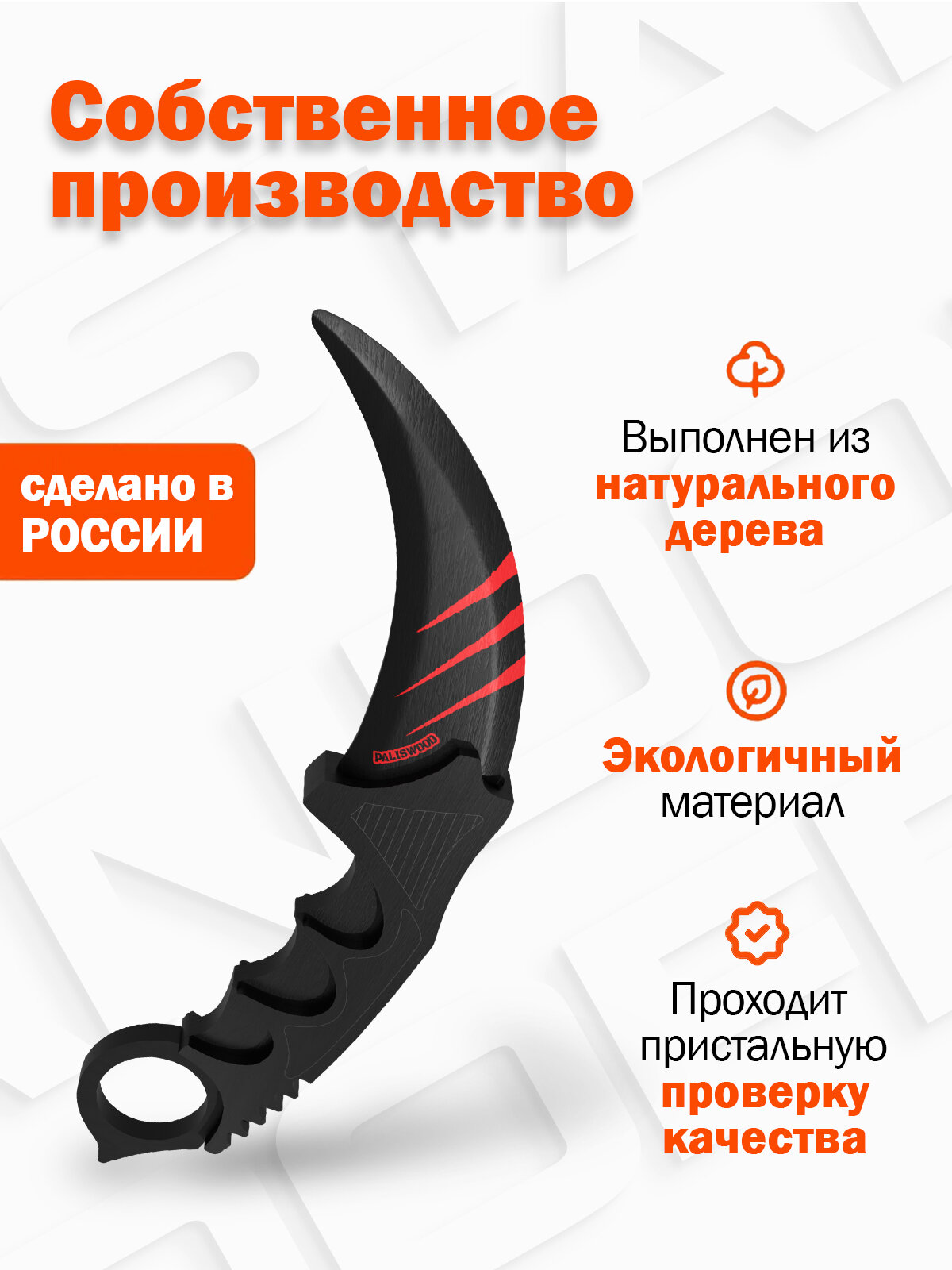 Деревянный нож Керамбит PalisWood Скретч / Karambit Scratch / тренировочный клинок Words of standoff интересное: