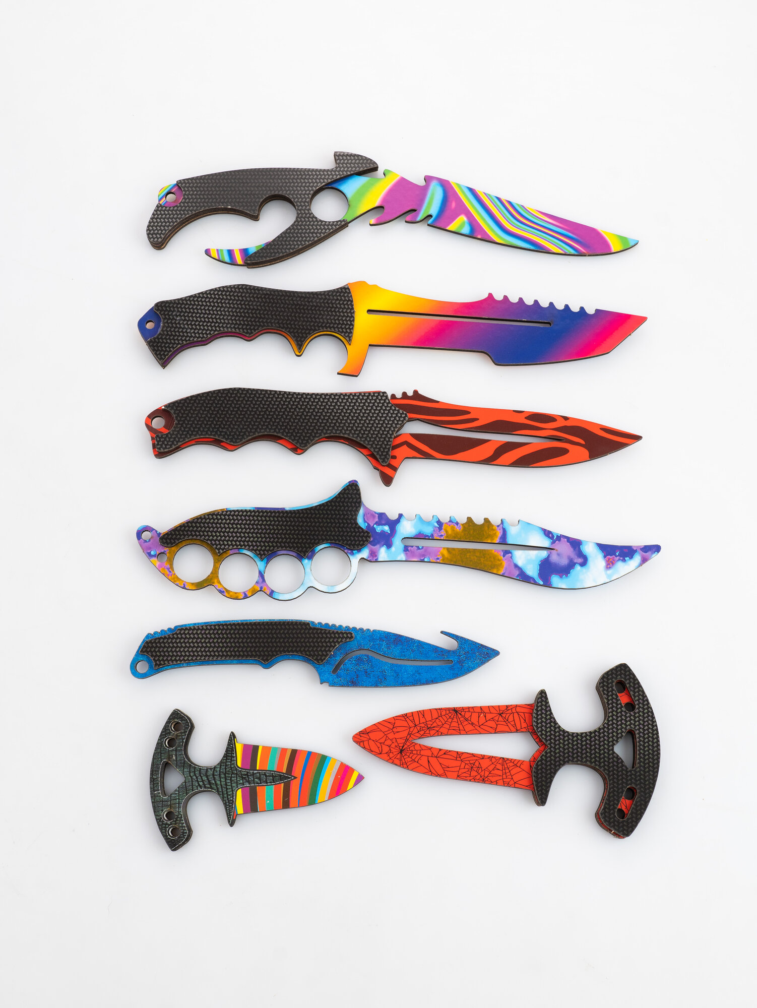 | Комплектация | Количество предметов в упаковке 7 шт. Комплектация кастетный нож-1 шт, охотничий нож большой и малый- 2 шт, нож акула-1 шт , тычковый нож большой и малый-2 шт. |