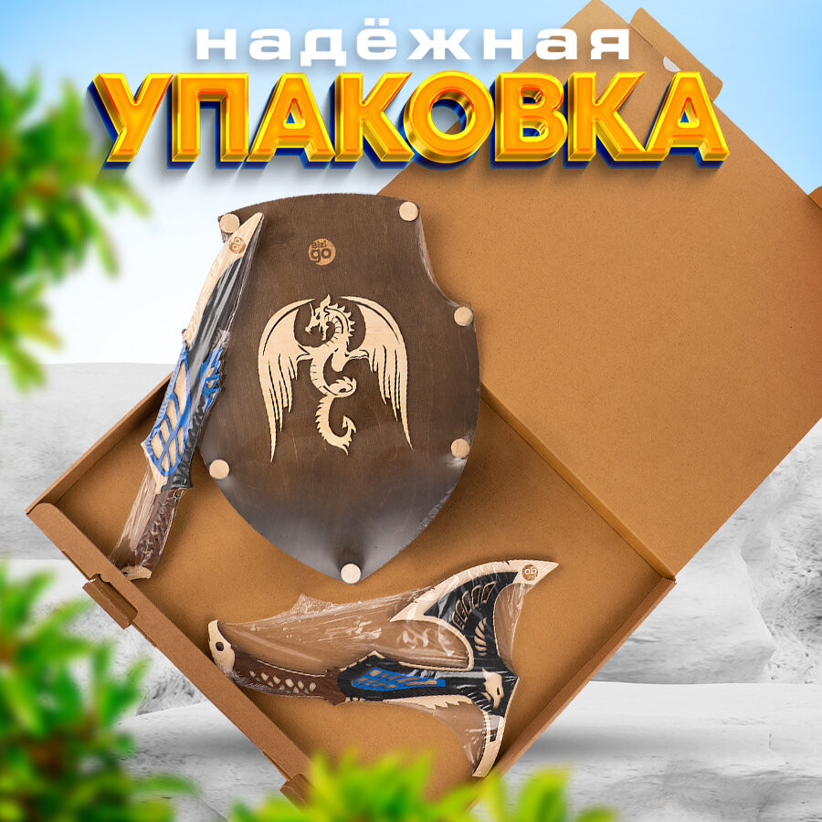Купить Игрушечное оружие из дерева, набор: деревянный кинжал, щит, топор для мальчиков.
