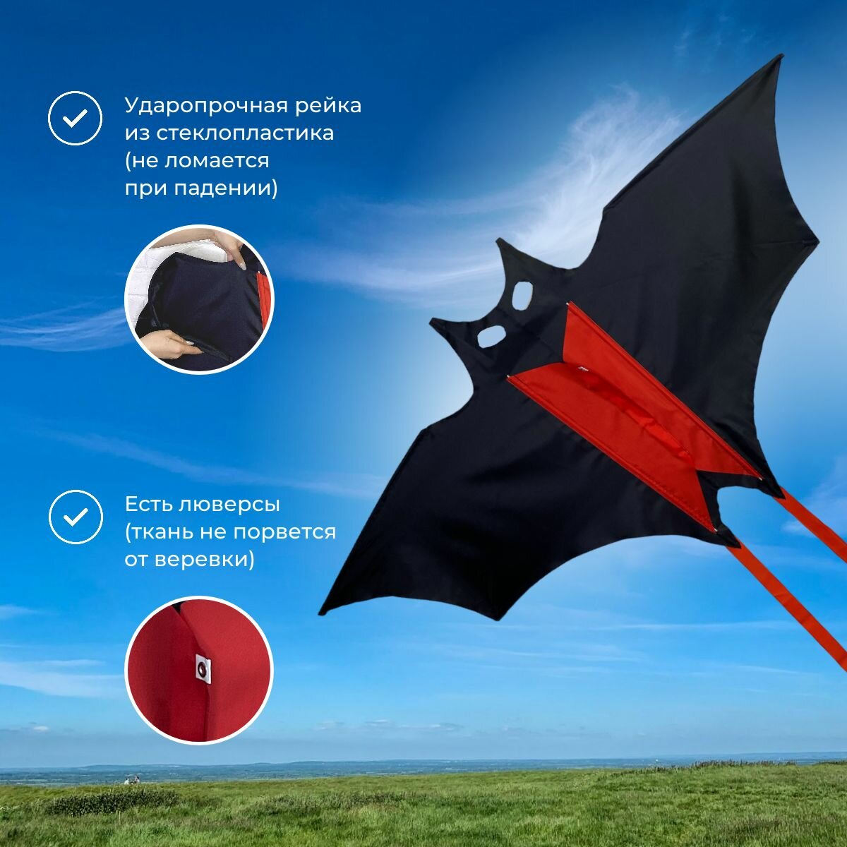 Воздушный змей "Летучая мышь" (чёрная) 140х80см интересное: