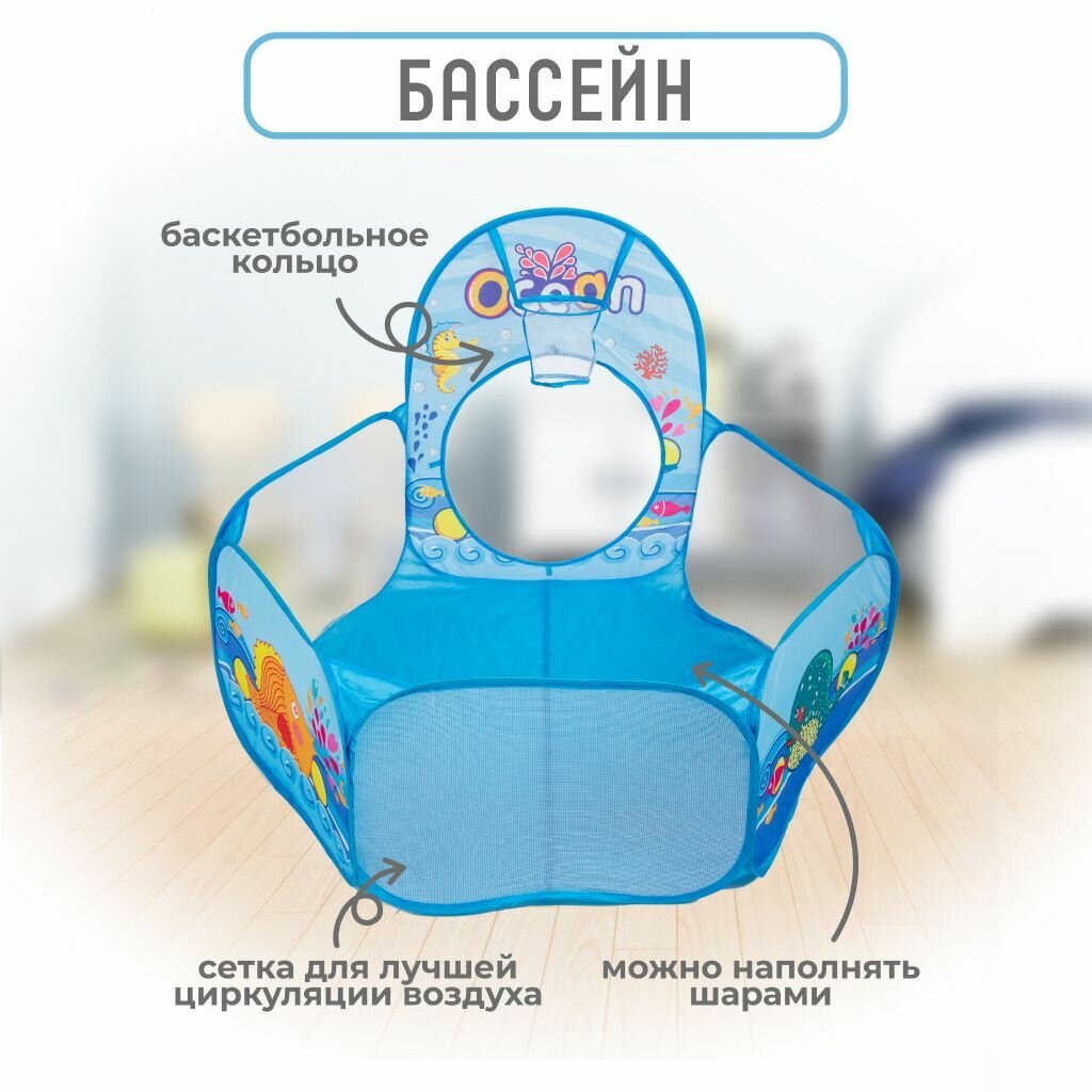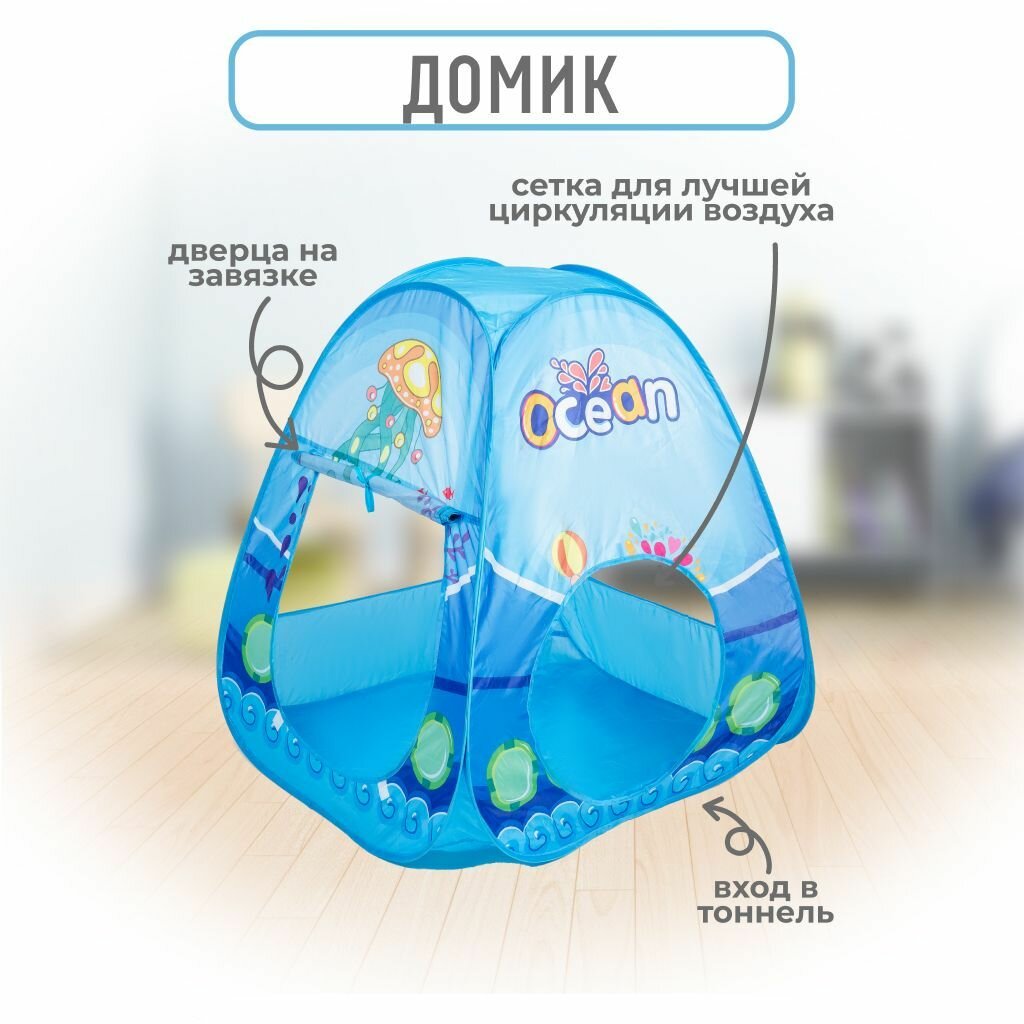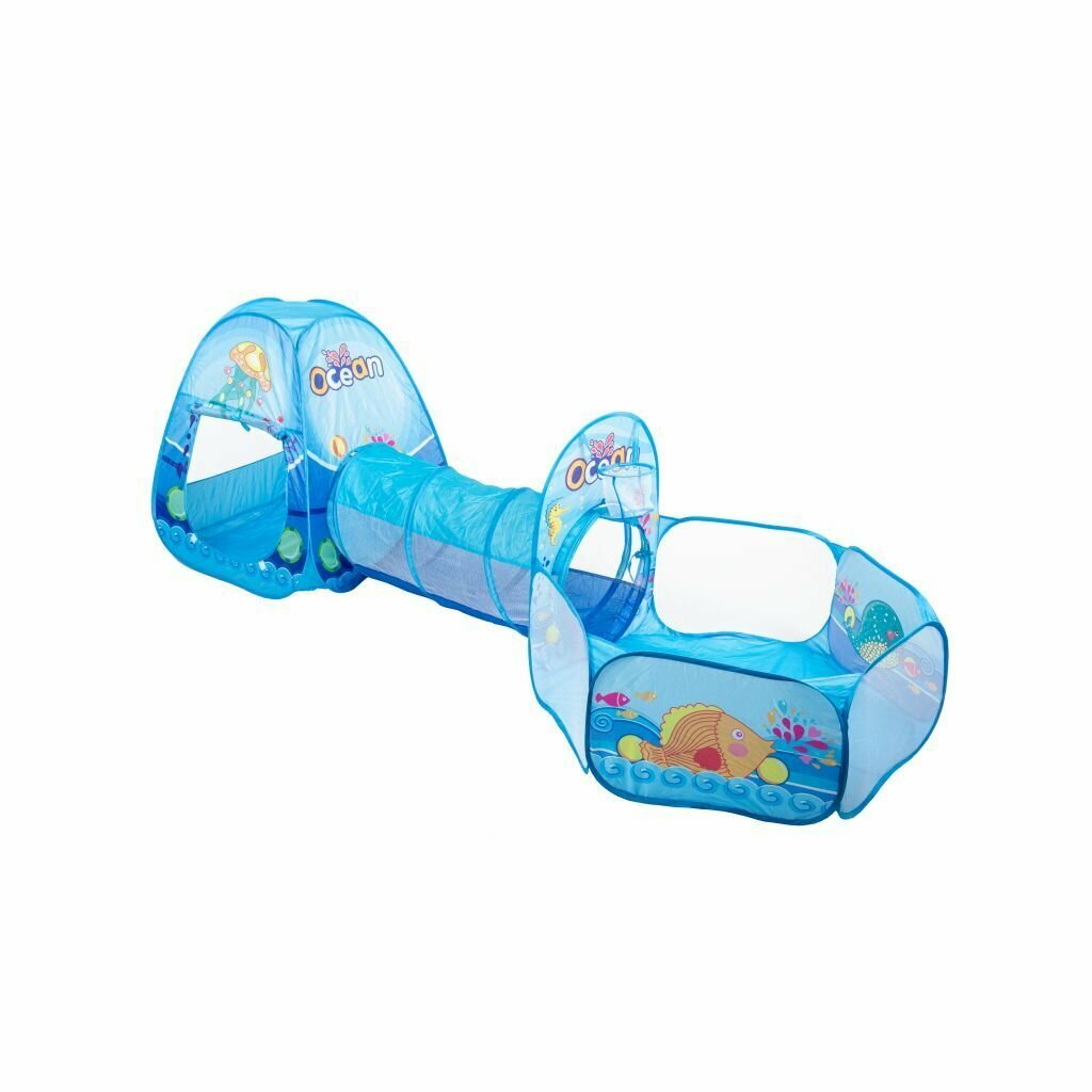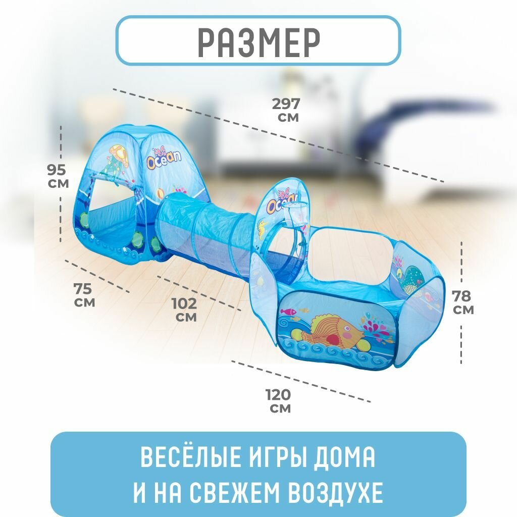 Купить Большая детская палатка игровая Solmax, домик шатер лабиринт 3 в 1 с туннелем и бассейном. Сумка для хранения в комплекте.