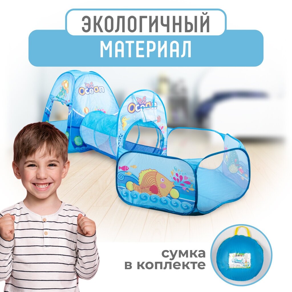 Игровая палатка Solmax, домик для детей с туннелем и бассейном, голубой интересное: