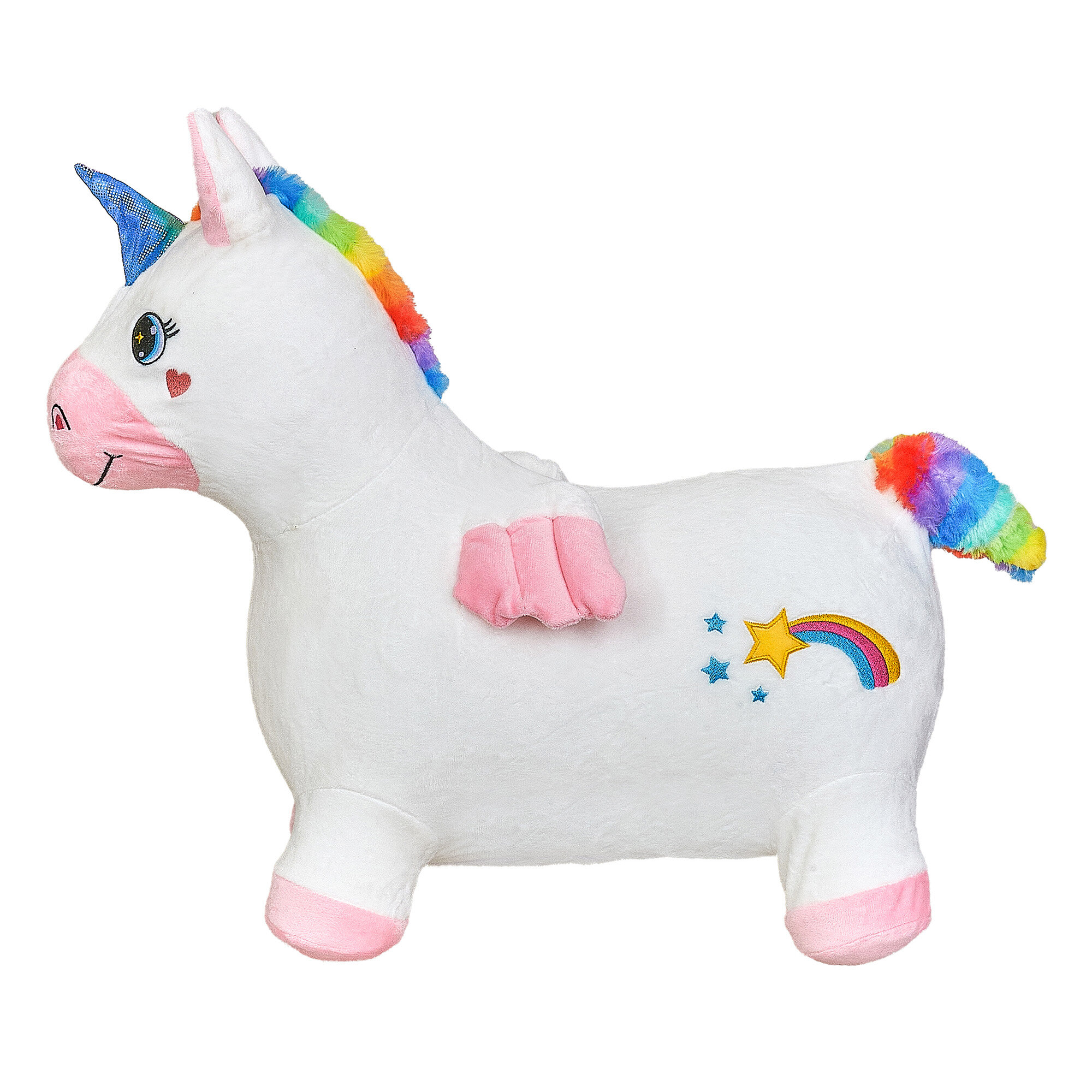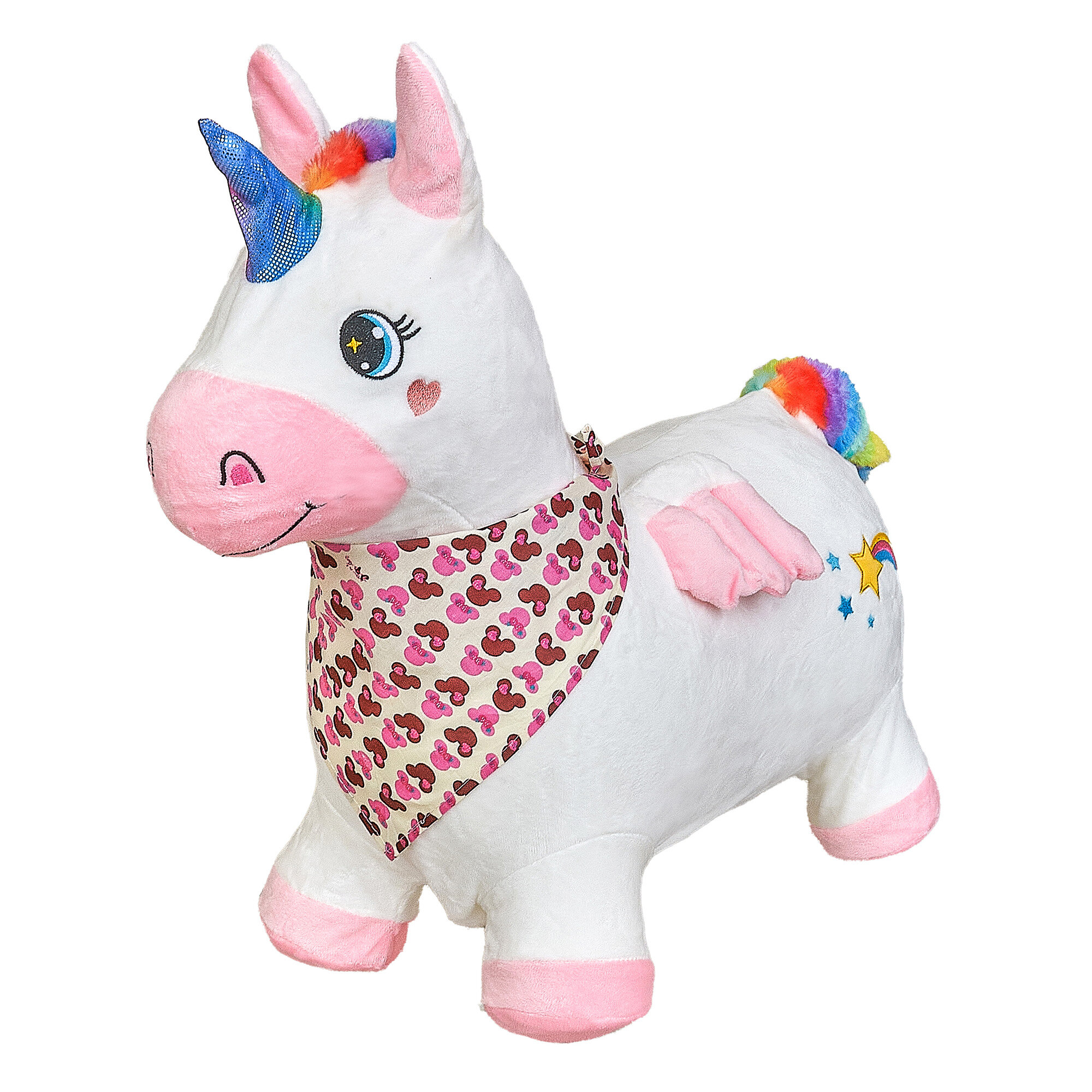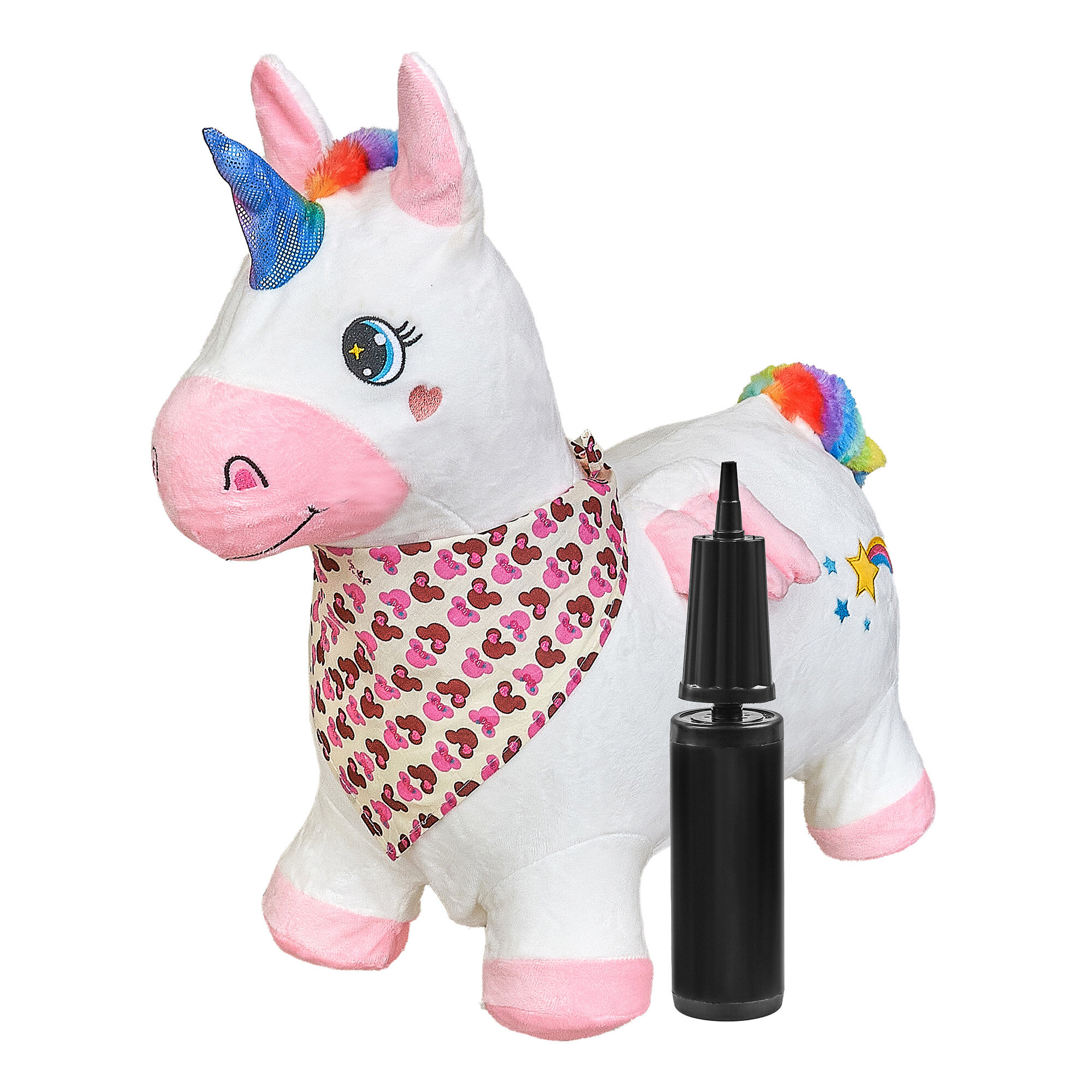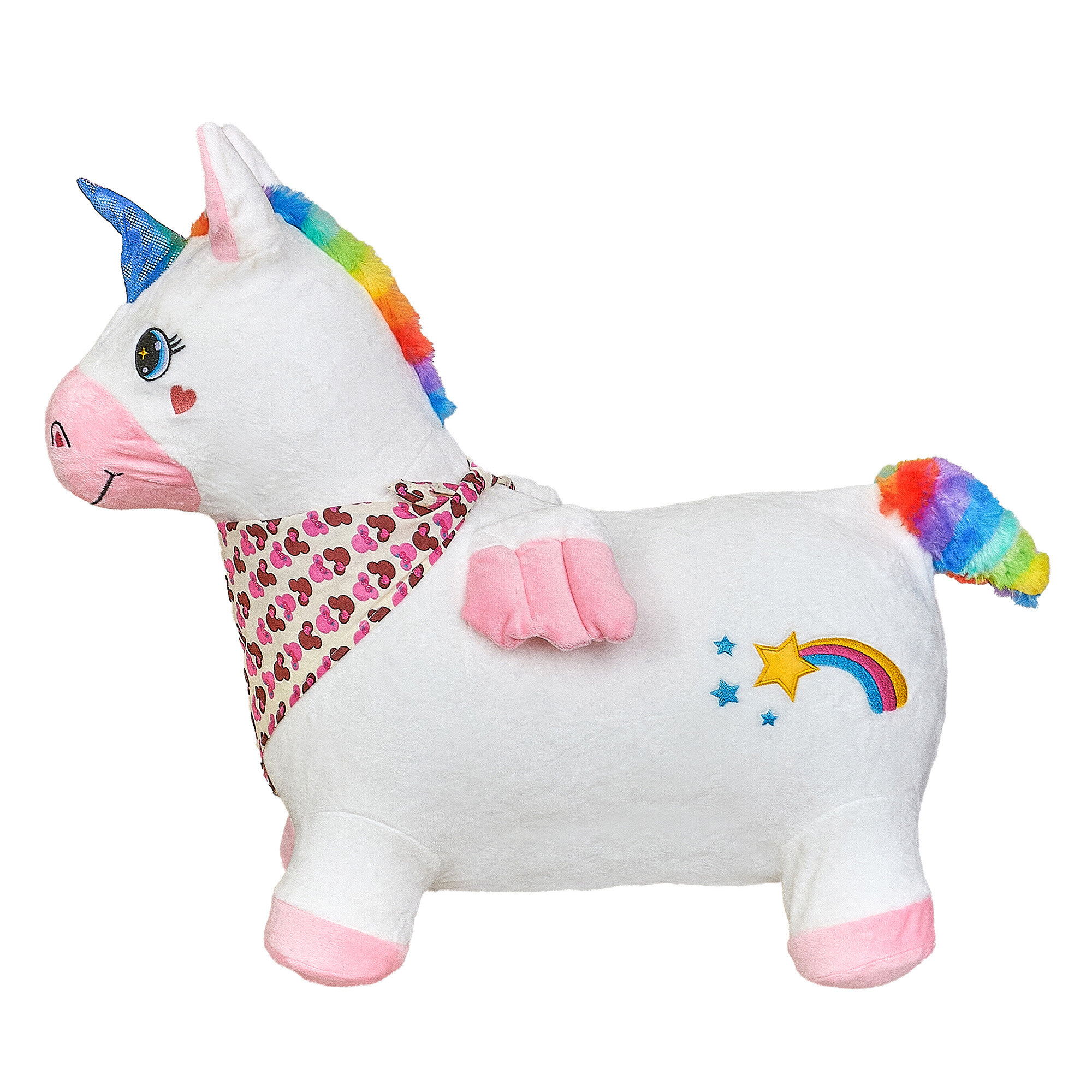 Купить Прыгун Плюшевый Единорог, детская надувная развивающая игрушка-тренажер в чехле (в комплекте с насосом и платком-банданой)