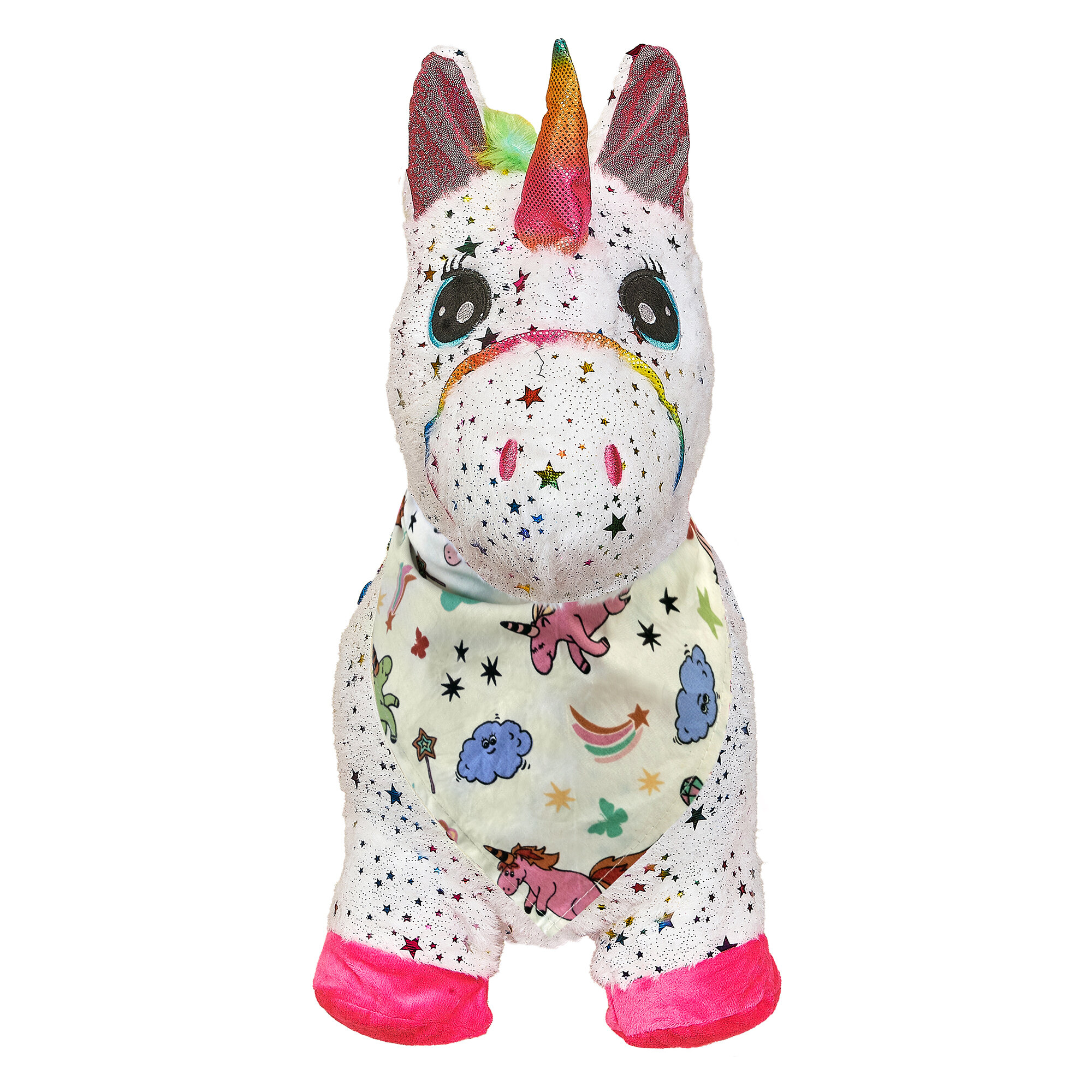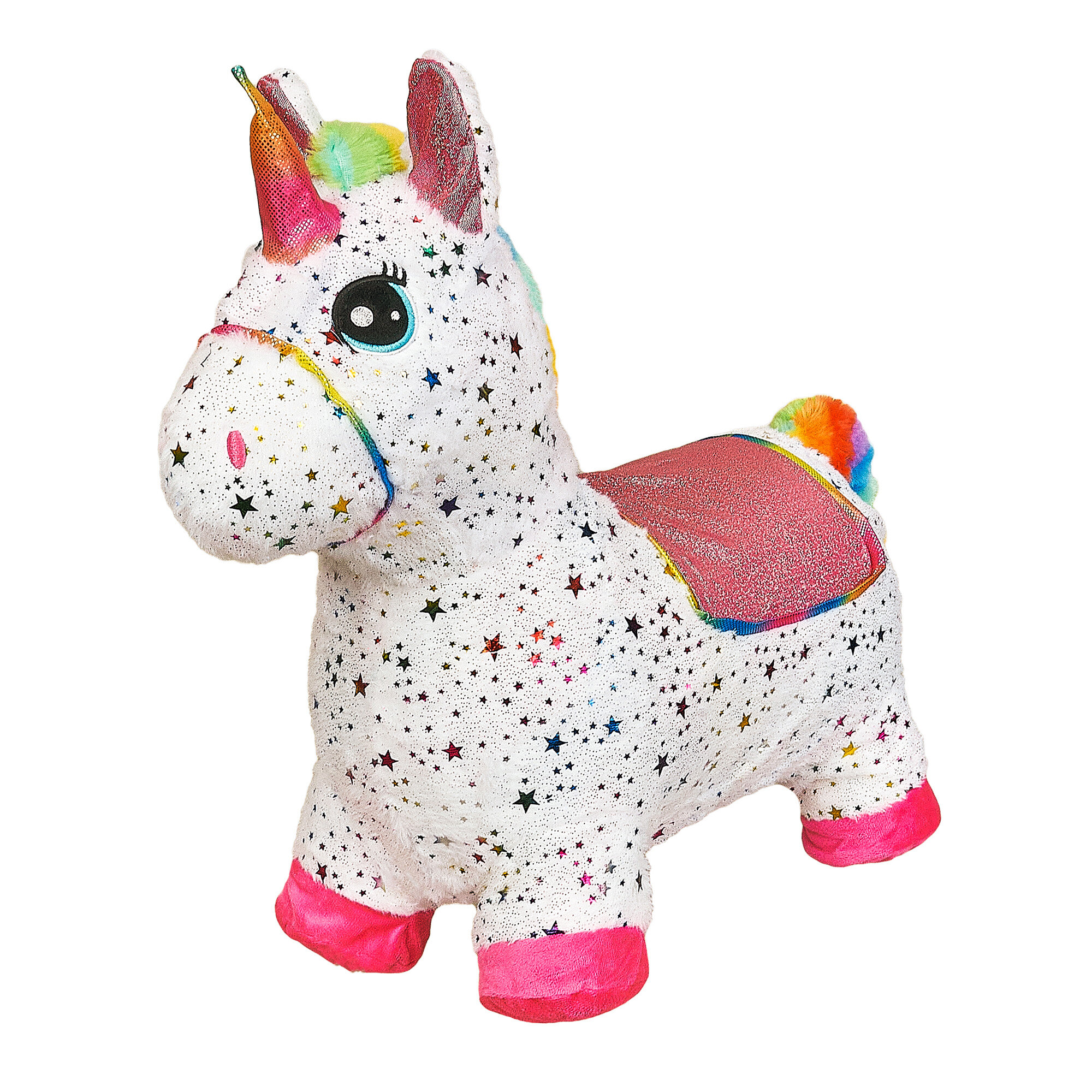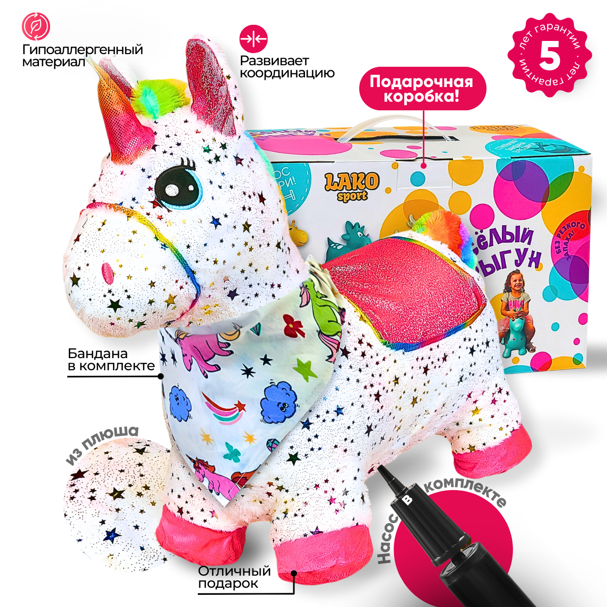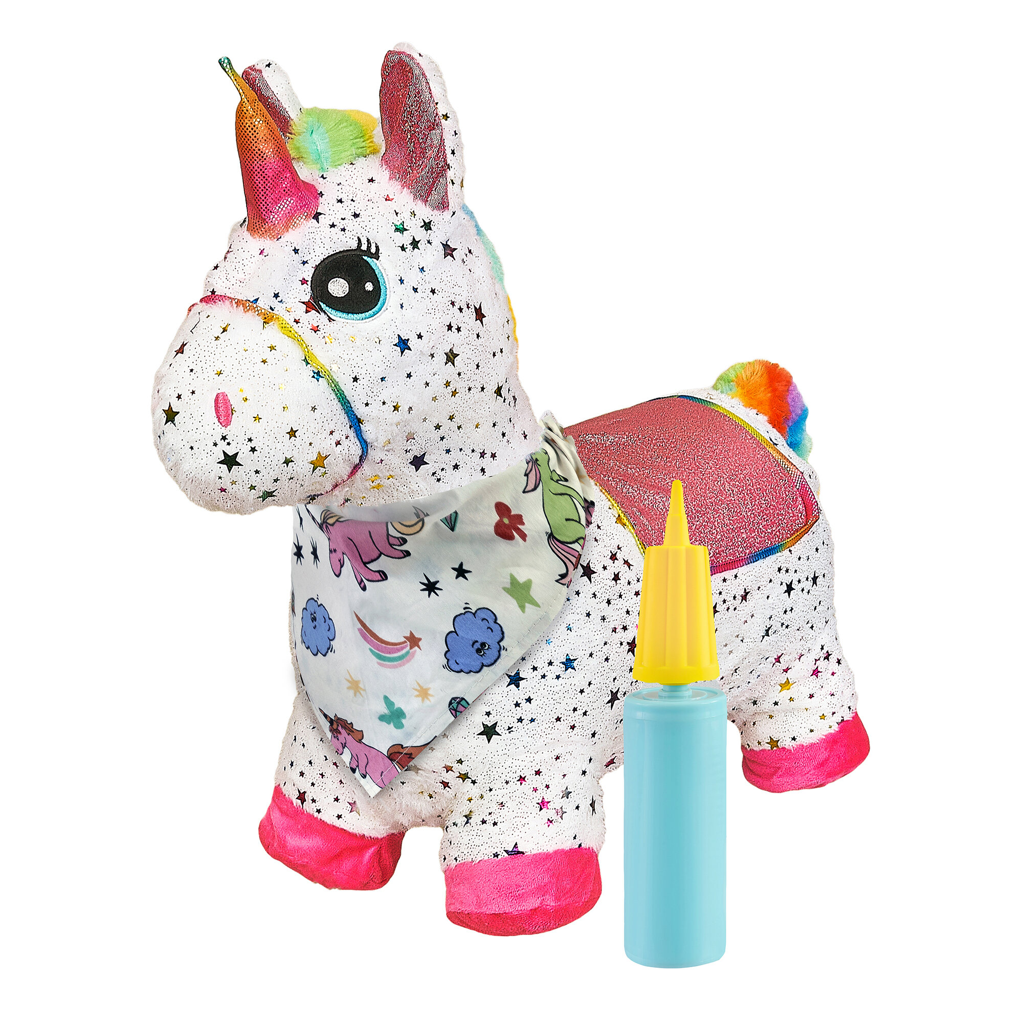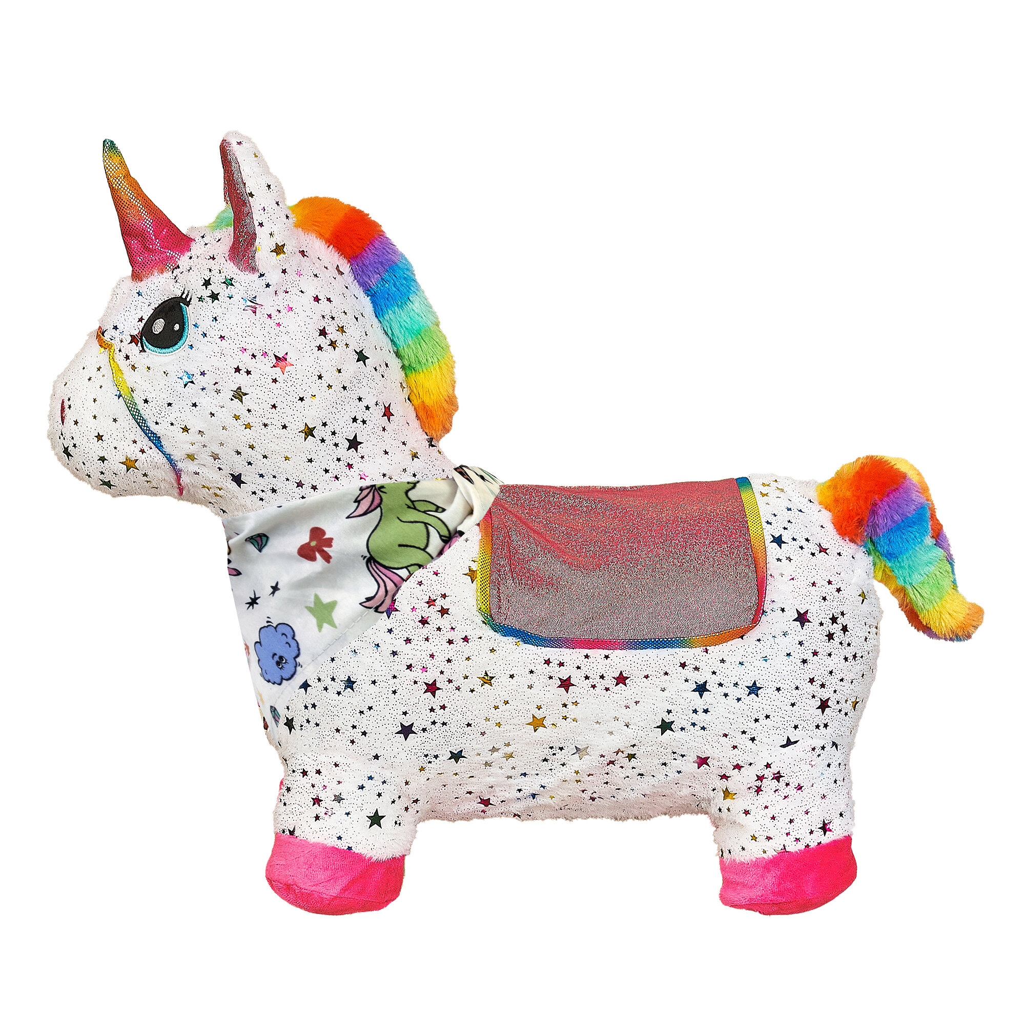Купить Прыгун Плюшевый Единорог Искра, детская надувная развивающая игрушка-тренажер в чехле (в комплекте с насосом и платком-банданой)