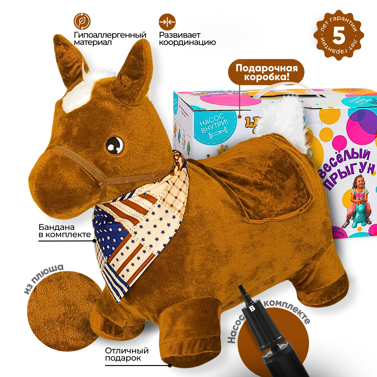 Купить Прыгун Плюшевая Лошадка, детская надувная развивающая игрушка-тренажер в чехле (в комплекте с насосом и платком-банданой)