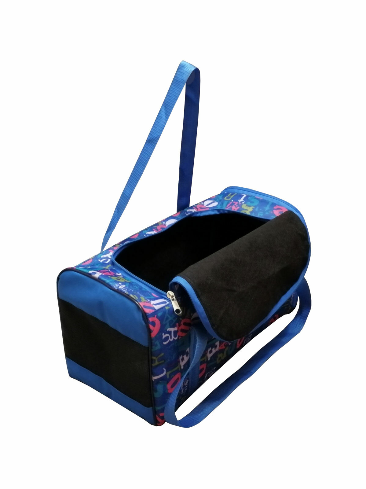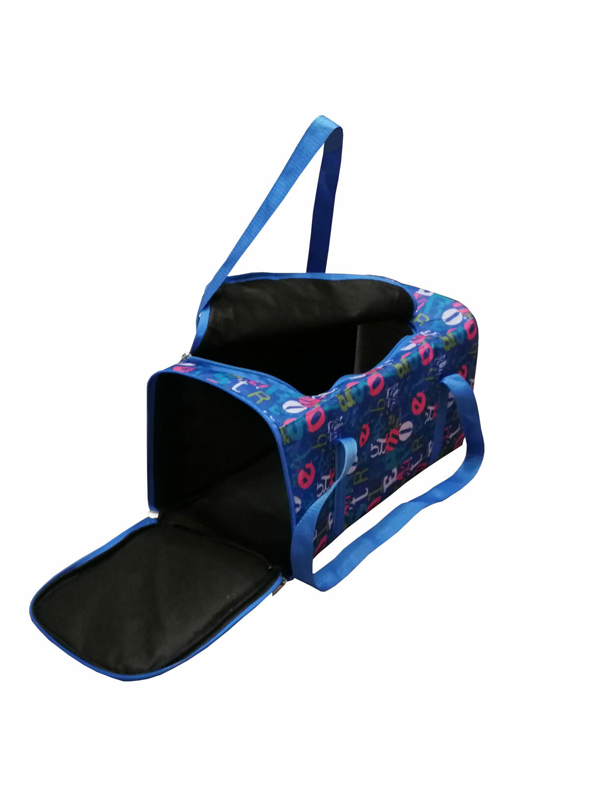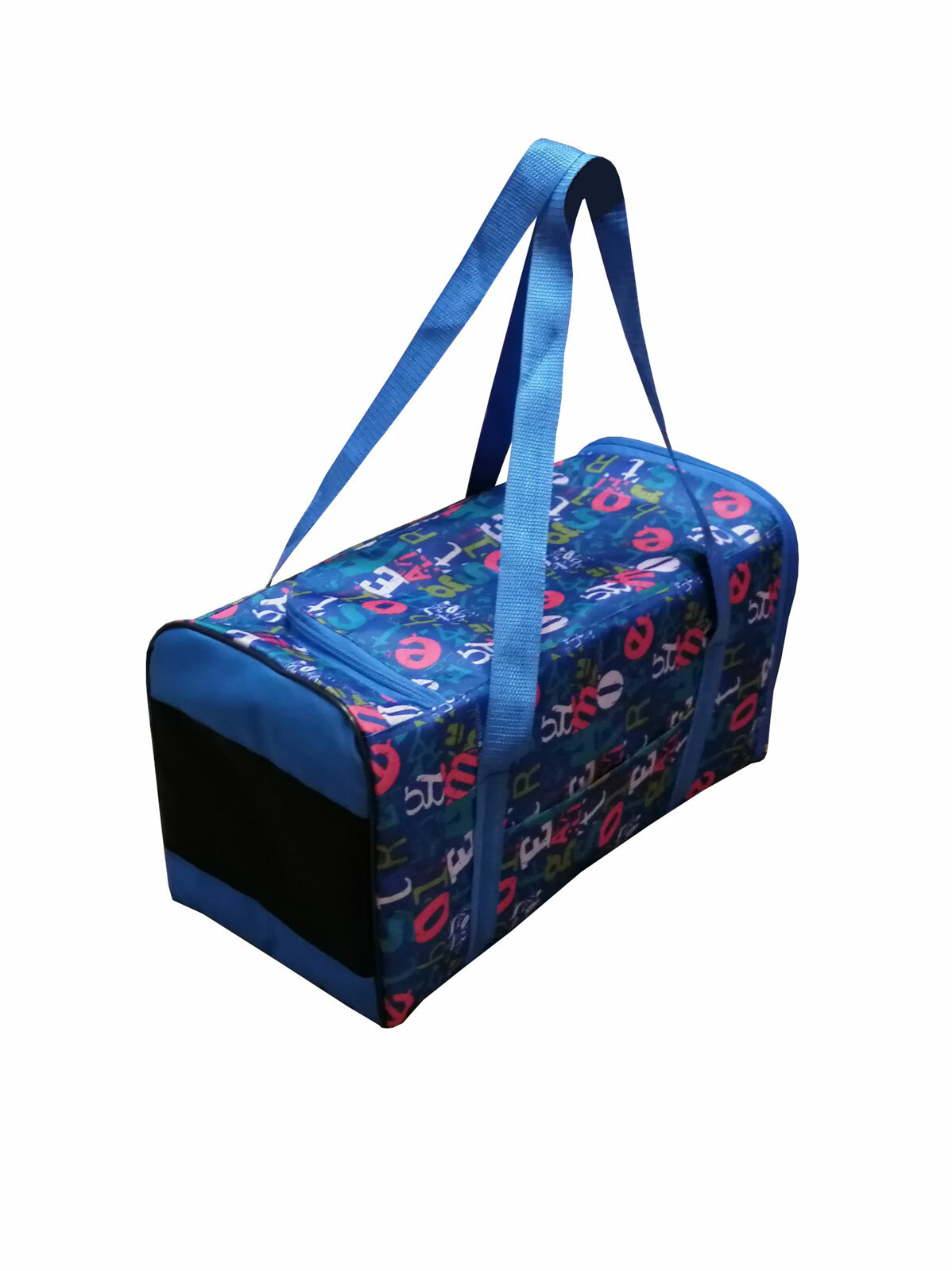 Купить Сумка-переноска для животных средняя с двумя выходами 47*24*25, Теремок, СПВ-1_разноцветные буквы на синем, цвет "синий, красный, зеленый"
