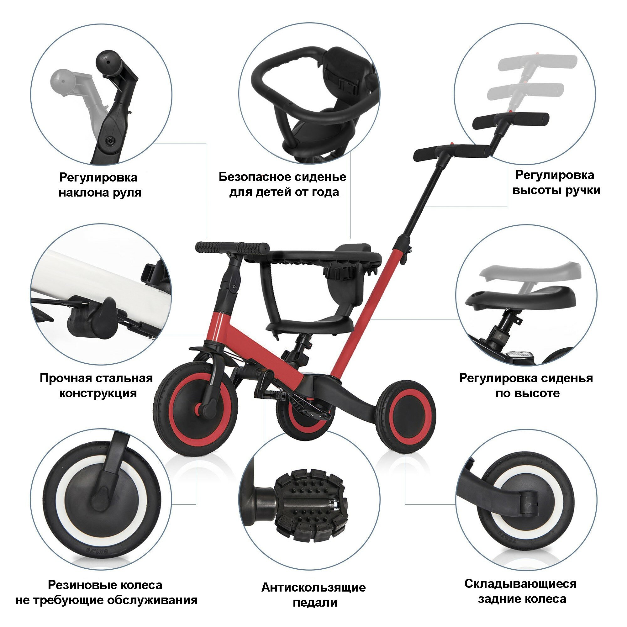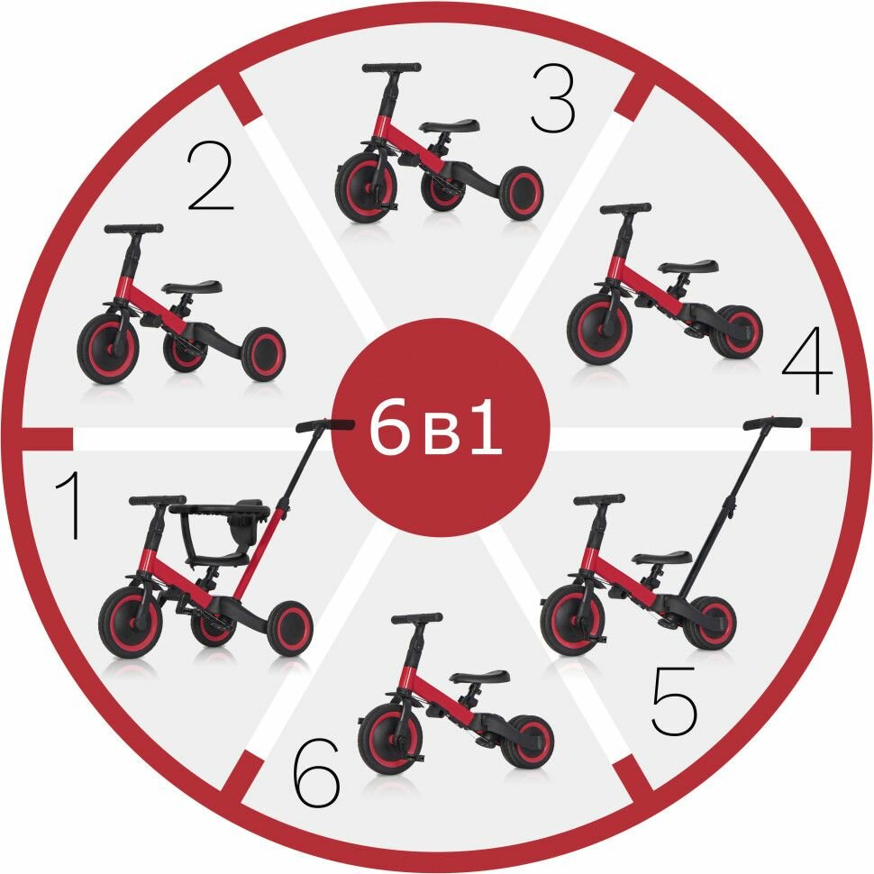 Детский беговел-велосипед 6-в-1 с родительской ручкой, красный интересное: