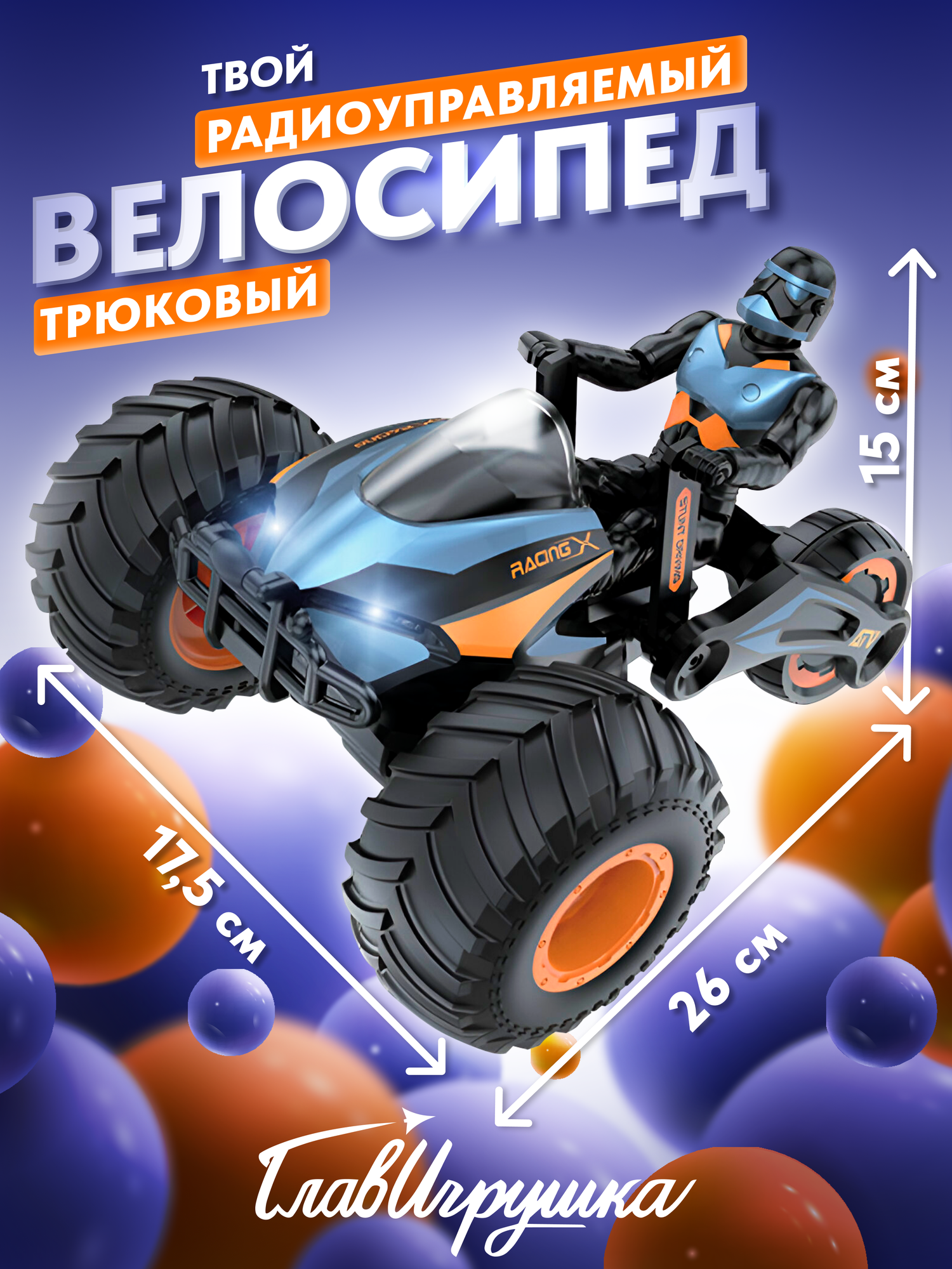 Трехколесный трюковой велосипед на пульте управления, главигрушка СI 2011 OR интересное: