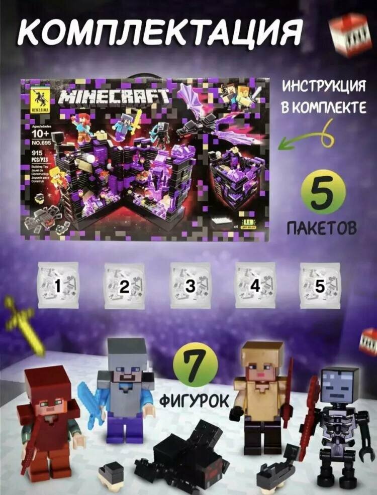 Купить Конструктор Майнкрафт 915 деталей "Сражение в Эндэрмире" с LED подсветкой / Конструктор minecraft / конструктор для мальчиков