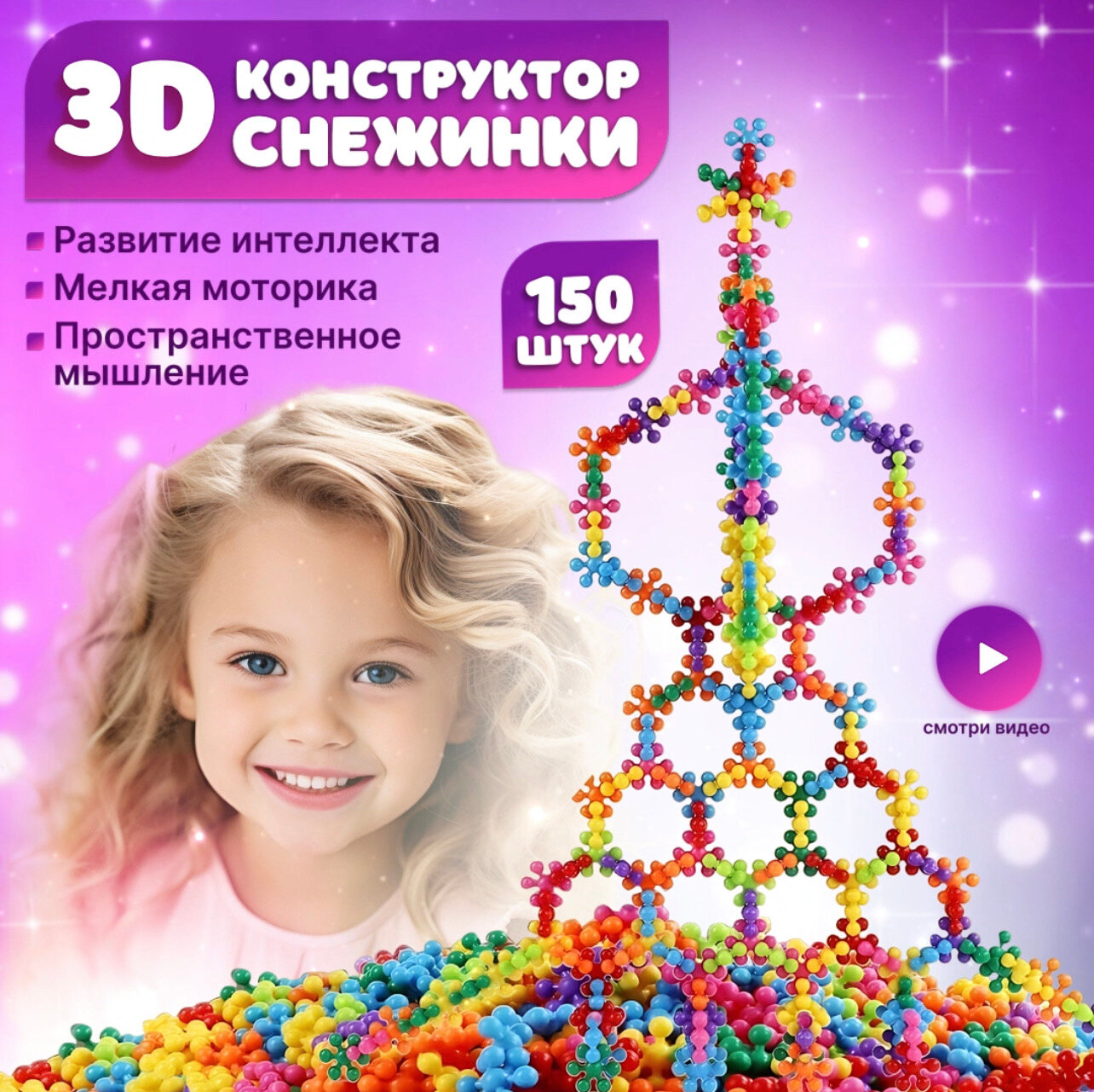 Конструктор объемный "Cнежинки" - 150 деталей интересное:
