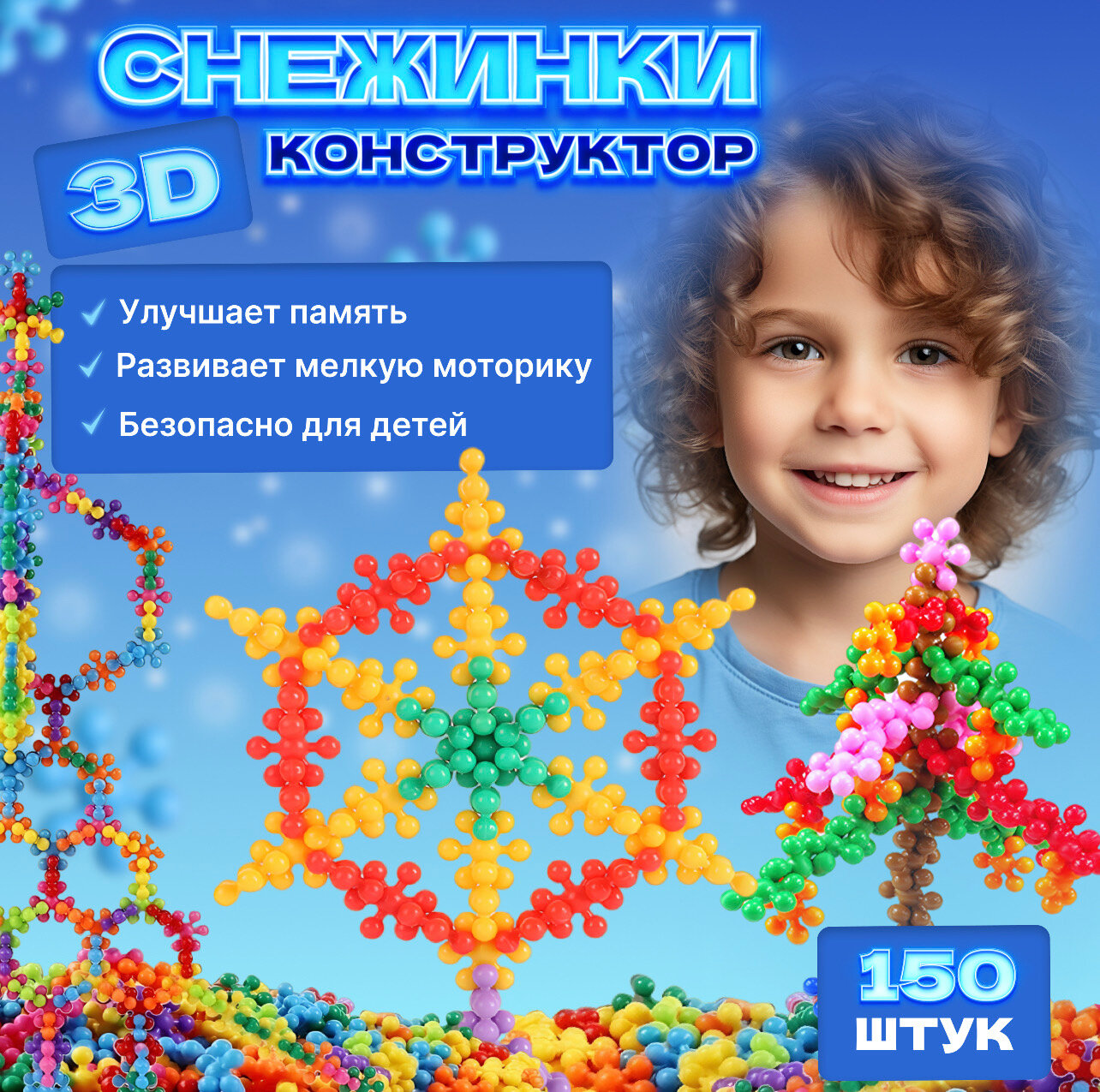 Купить Конструктор объемный "Cнежинки" - 150 деталей