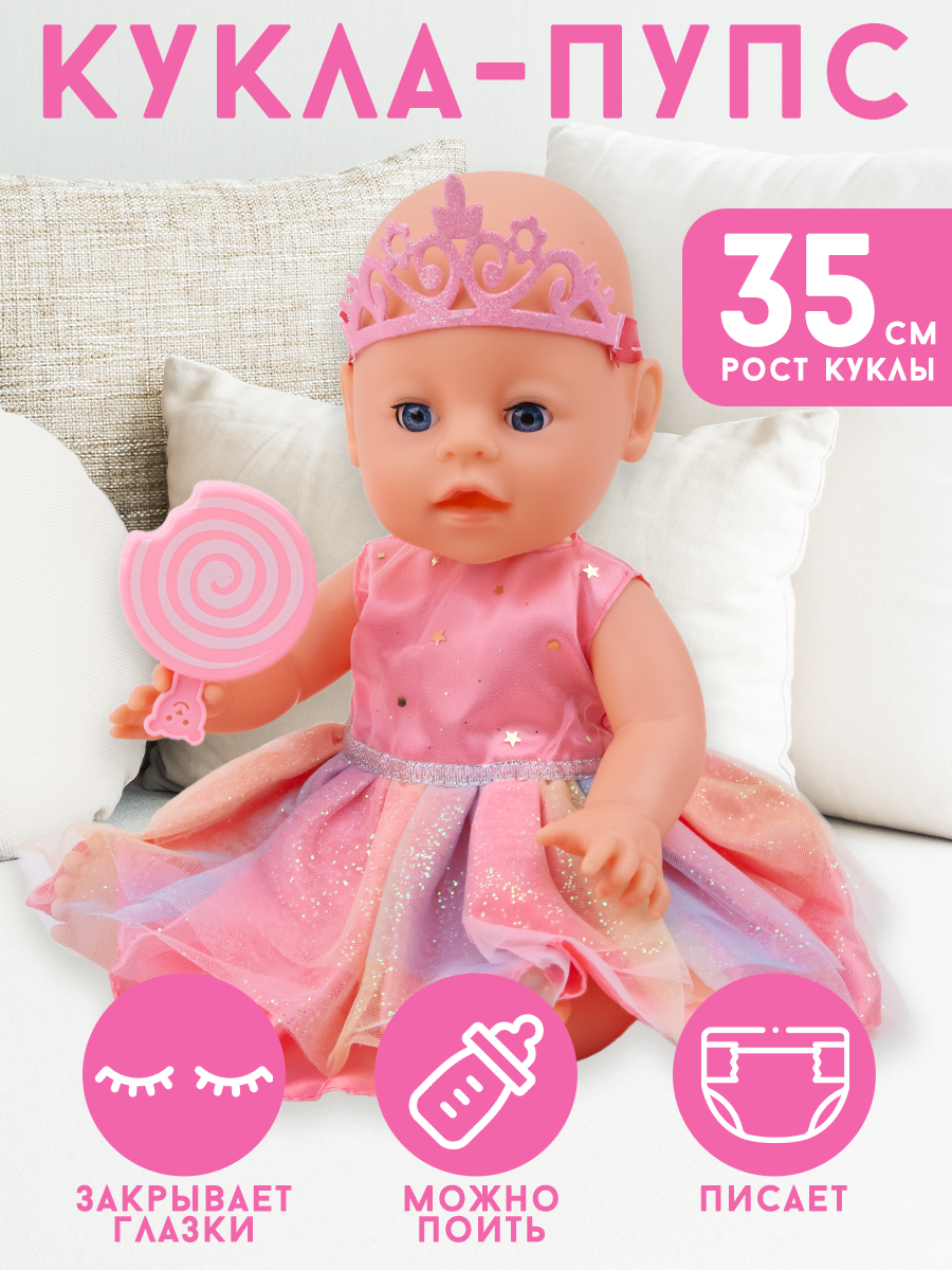 Кукла "Пупс" 35 cм, пьет и писает, с музыкальным тортиком