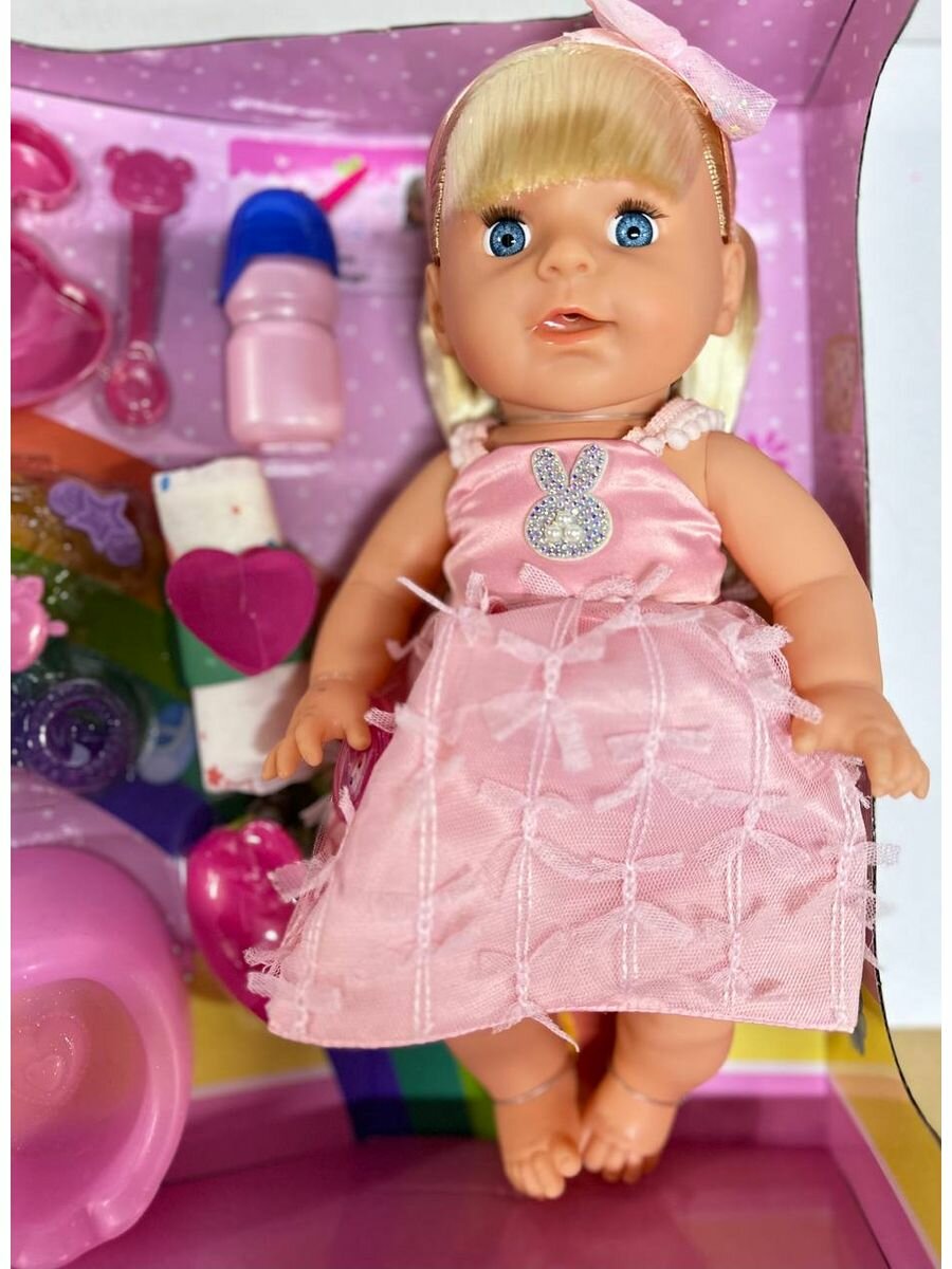 | Комплектация | кукла-пупс, тарелочка, ложка, бутылочка для кормления, леденец, подгузник |