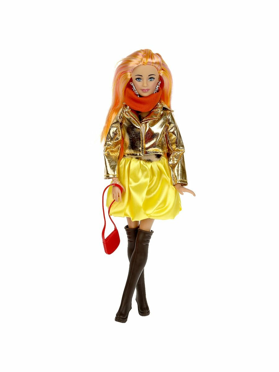 Купить Кукла Карапуз "София" 29см в пышной юбке и золотистом пиджаке, руки и ноги сгибаются, с аксессуарами