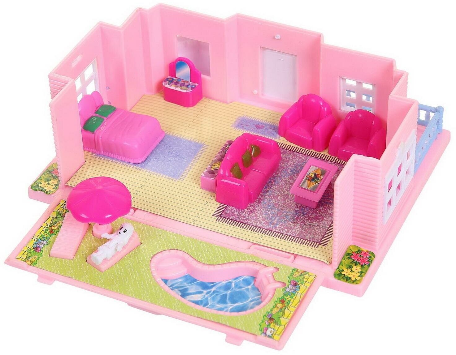 Купить Дом кукольный складной, с мебелью и фигуркой человека, 2 вида в ассортименте, в коробке 8049