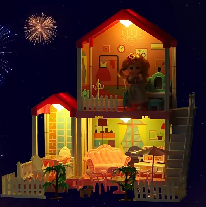 Кукольный дом Tamillatis с 19 предметами мебели и освещением интересное: