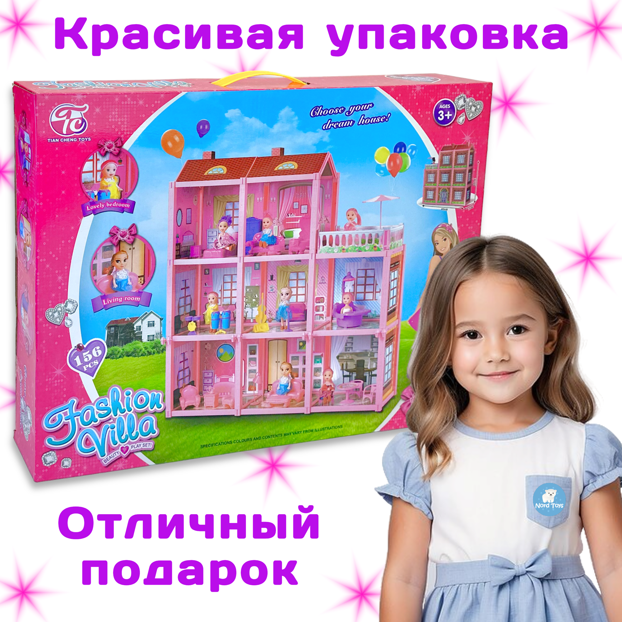 Ниже Вы можете прочитать отзывы на Кукольный домик Fashion Villa с куклой, трехэтажный, 8 комнат, терраса, с набором мебели, 65х63х17 см, ознакомится с подробными характеристиками, посмотреть интересные обзоры и фотографии на Кукольный домик Fashion Villa с куклой, трехэтажный, 8 комнат, терраса, с набором мебели, 65х63х17 см.