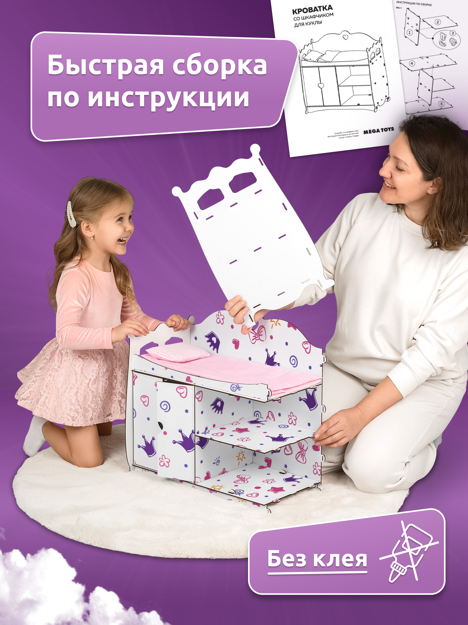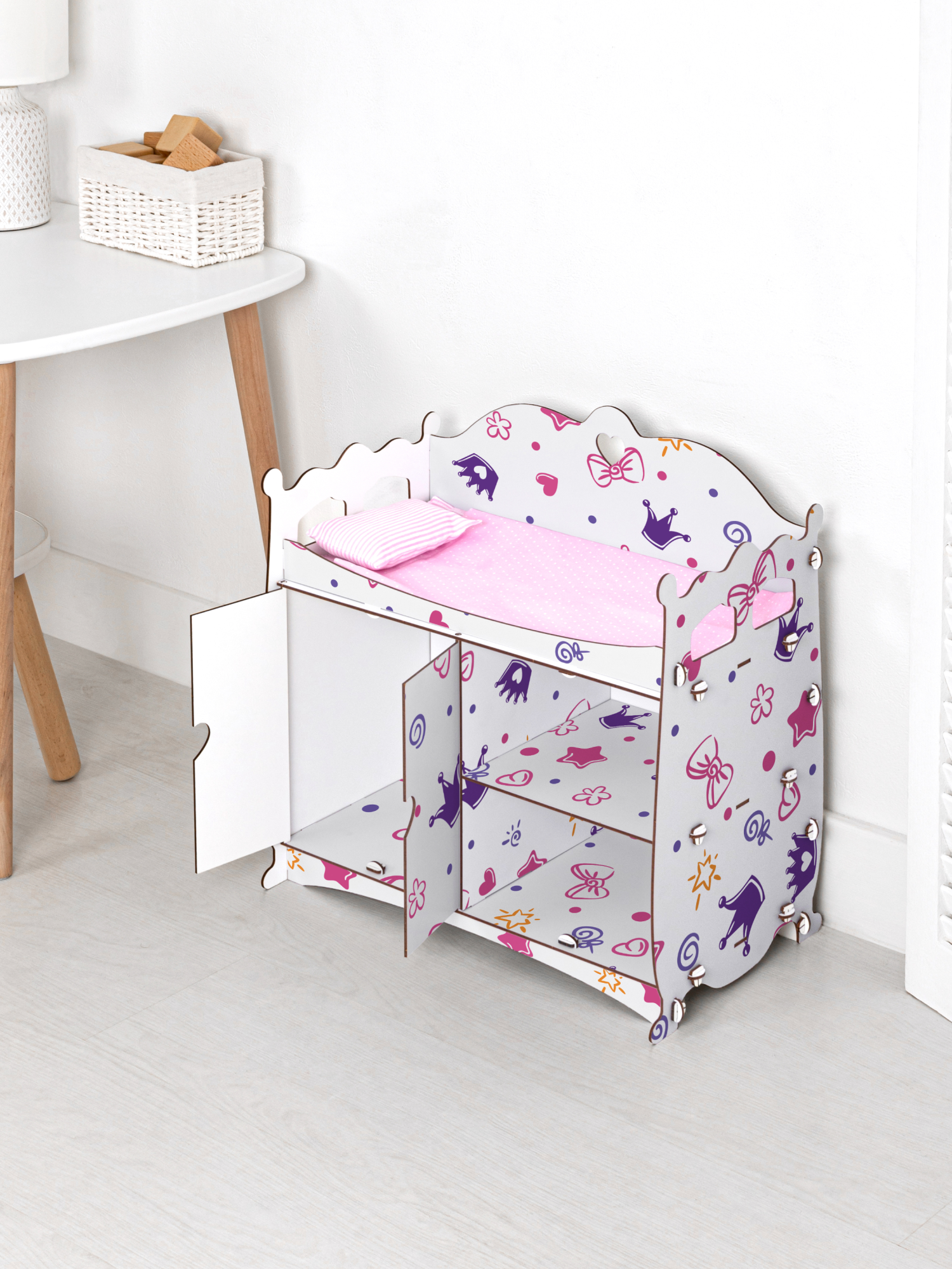 Кроватка для кукол MEGA TOYS серия манюня пеленальный шкаф кроватка деревянная для куклы до 45 см Единороги