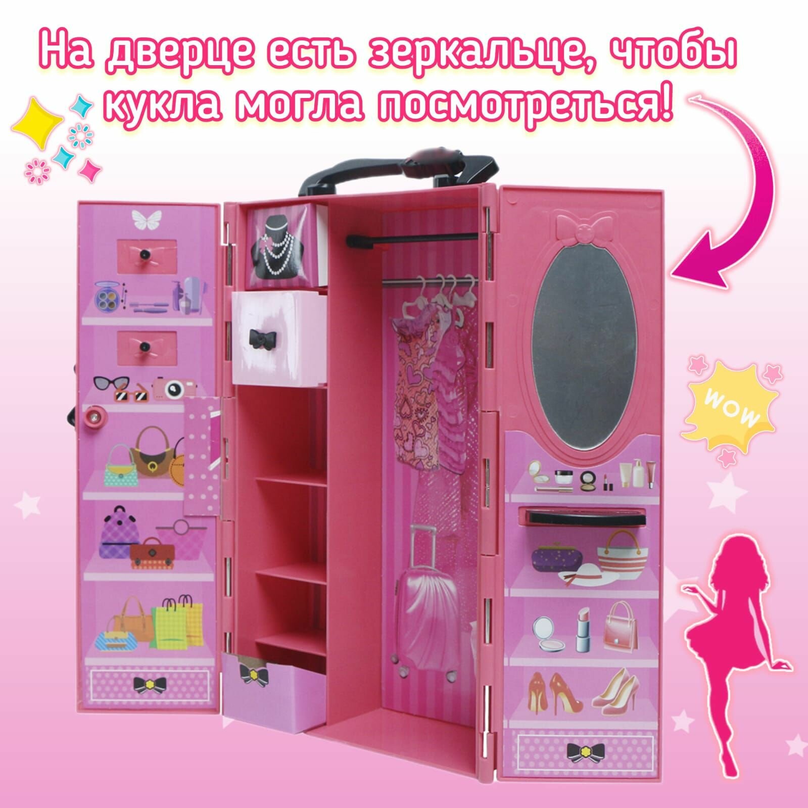 Мебель для кукол SHANTOU YISHENG Гардероб с одеждой YS1905-11 интересное: